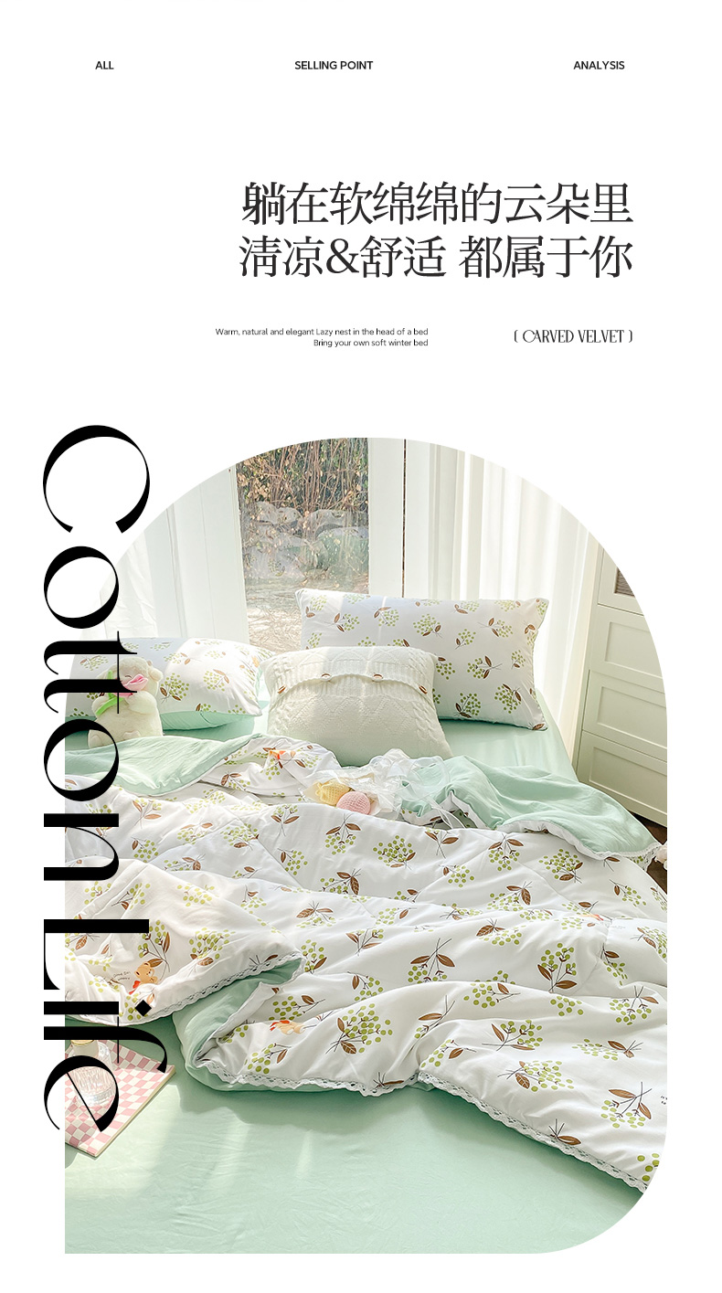 • 91家纺网 家纺一手货源 找家纺 羋多 2024新款小清新花边水洗棉夏被夏凉被夏被四件套被子 一见倾心