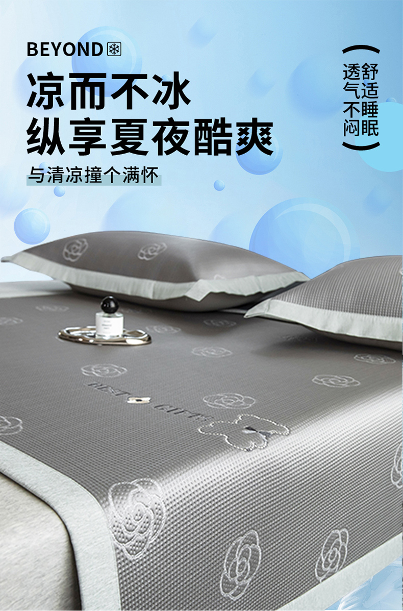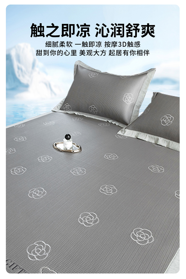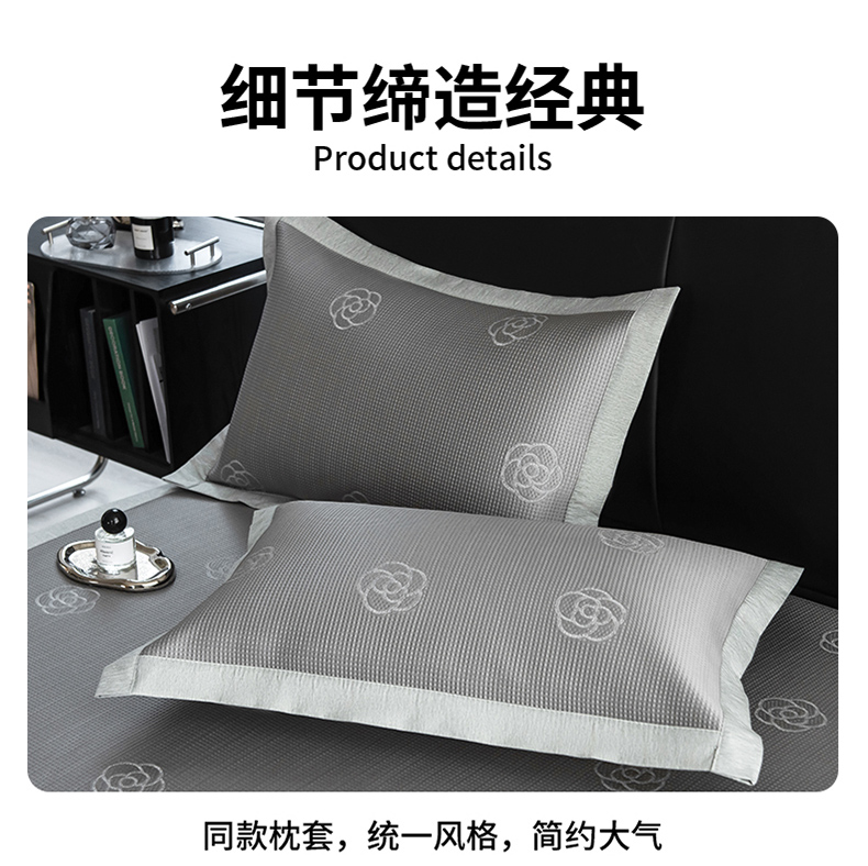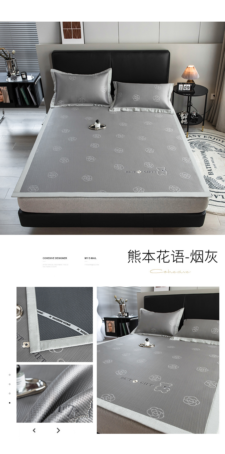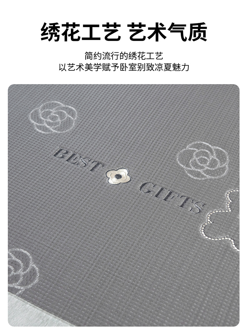 商品名称:全季家居 2024新款纯色凉豆豆绣花款凉席 熊本花语-烟灰