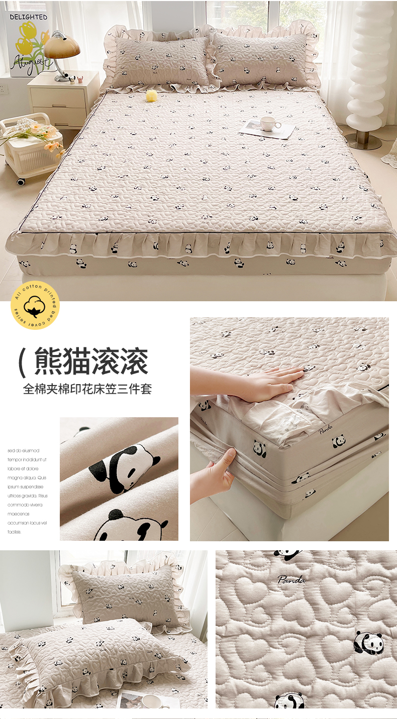 (总)宜凡家纺 2024新款全棉印花夹棉床笠三件套