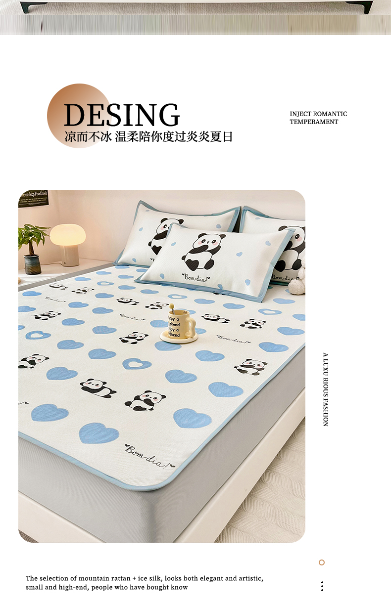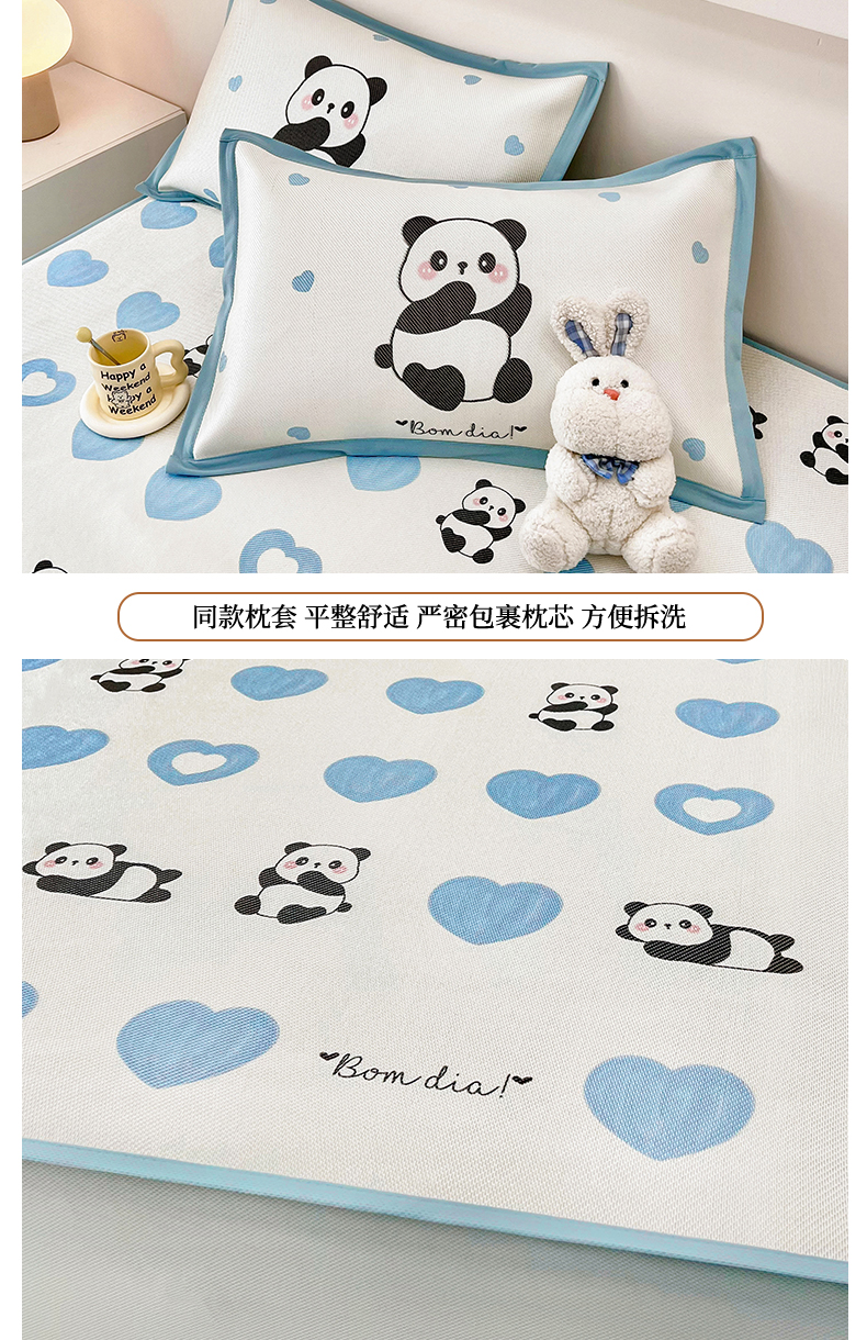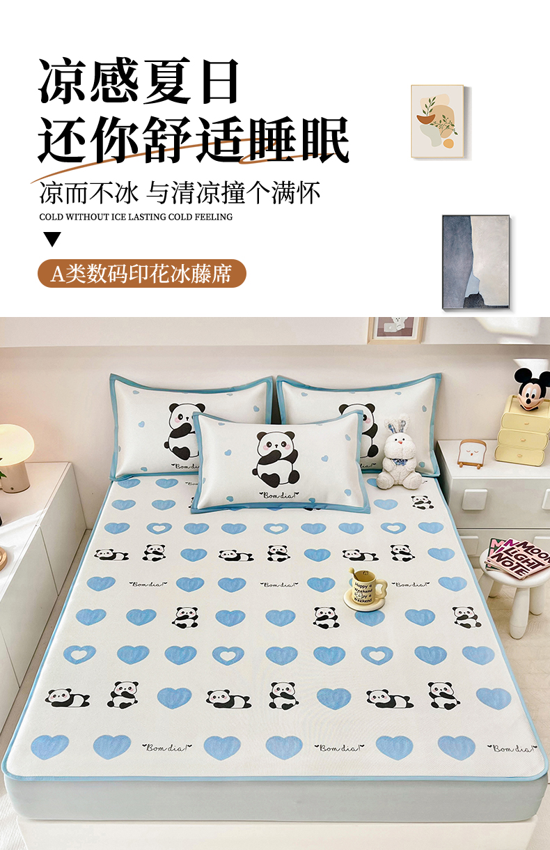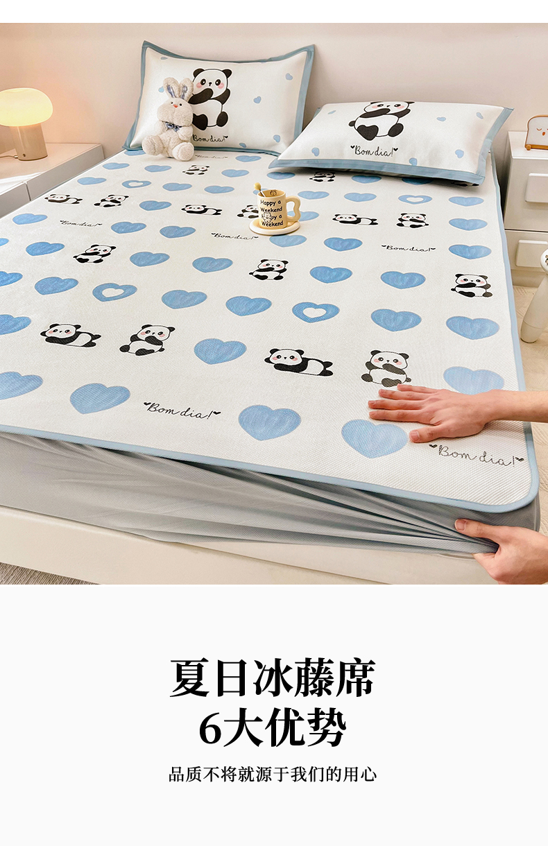 (总)全季家居 2025新款A类抗菌防螨贪吃熊猫系列冰藤席凉席席子,金咖 床席,水绿 床席,银灰 床席,金咖 床笠,水绿 床笠,银灰 床笠