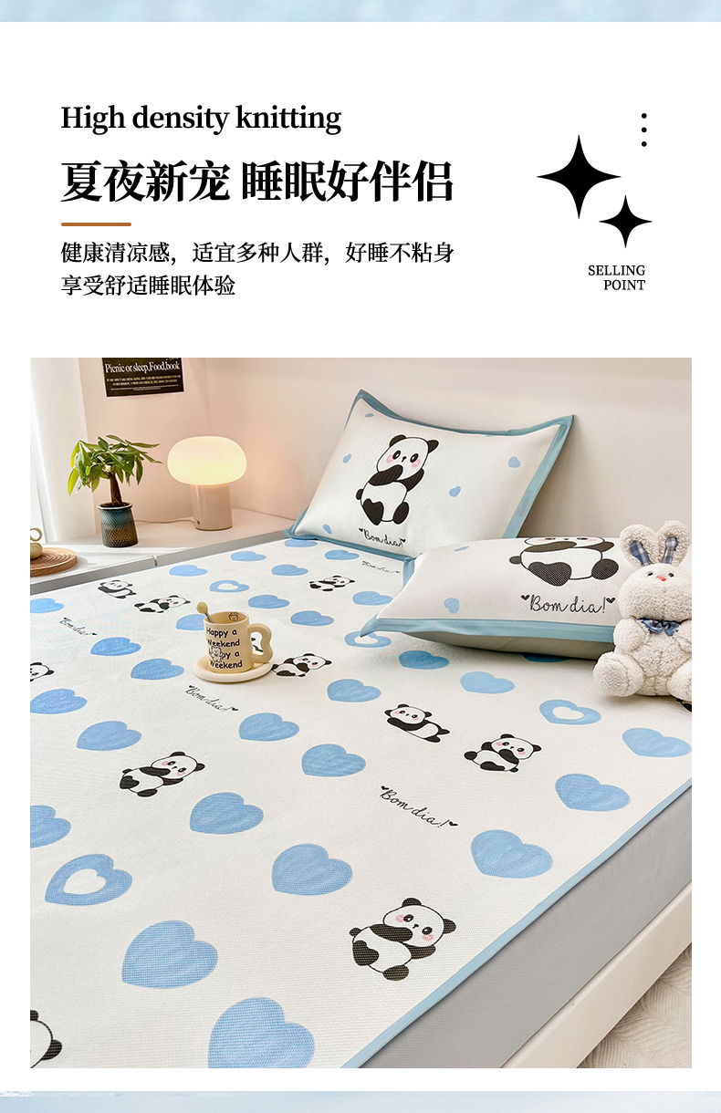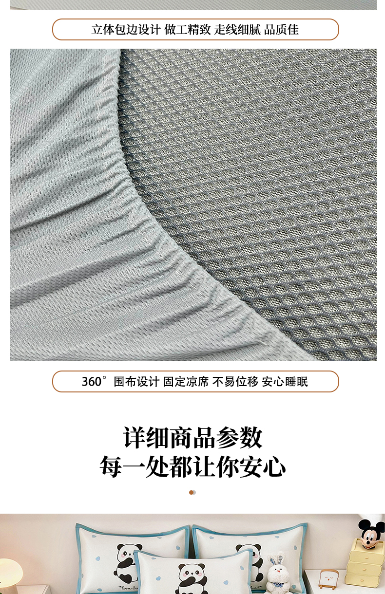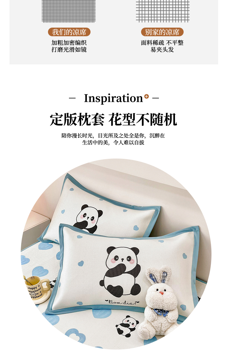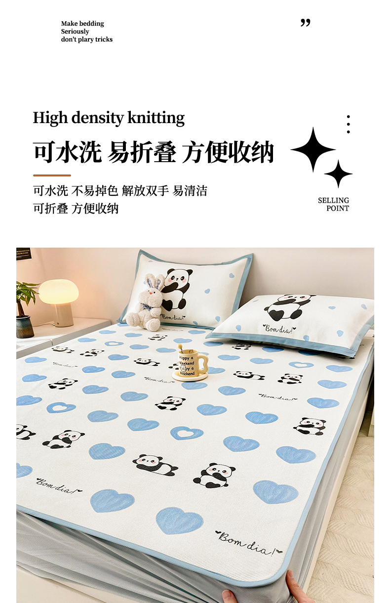 (总)全季家居 2025新款A类抗菌防螨贪吃熊猫系列冰藤席凉席席子,金咖 床席,水绿 床席,银灰 床席,金咖 床笠,水绿 床笠,银灰 床笠