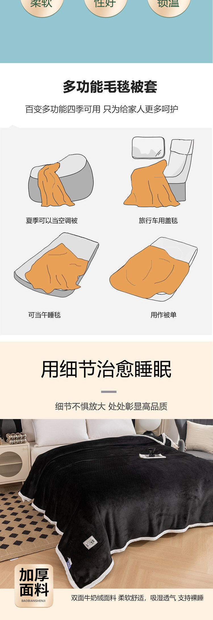商品名称:凤凰林毛毯 2024新款加厚亲肤牛奶绒毛毯 高级黑