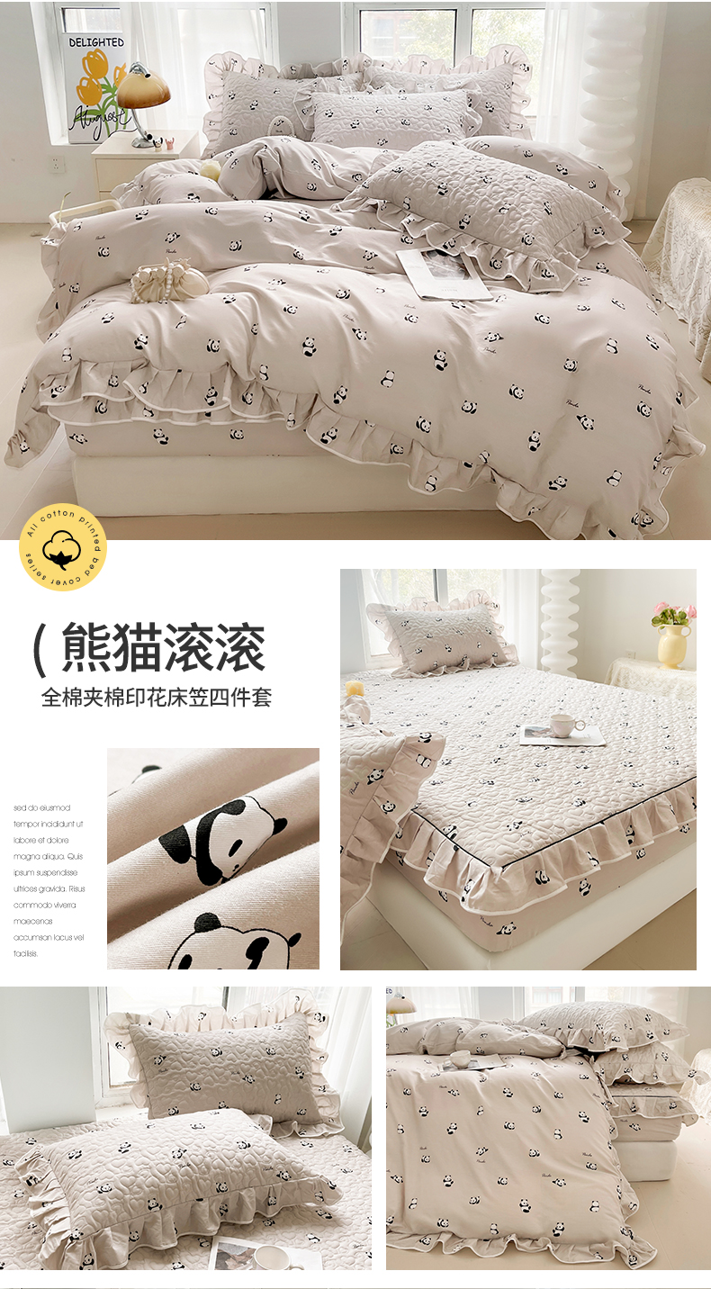 宜凡家纺 2024新款全棉印花夹棉床笠四件套 熊猫滚滚