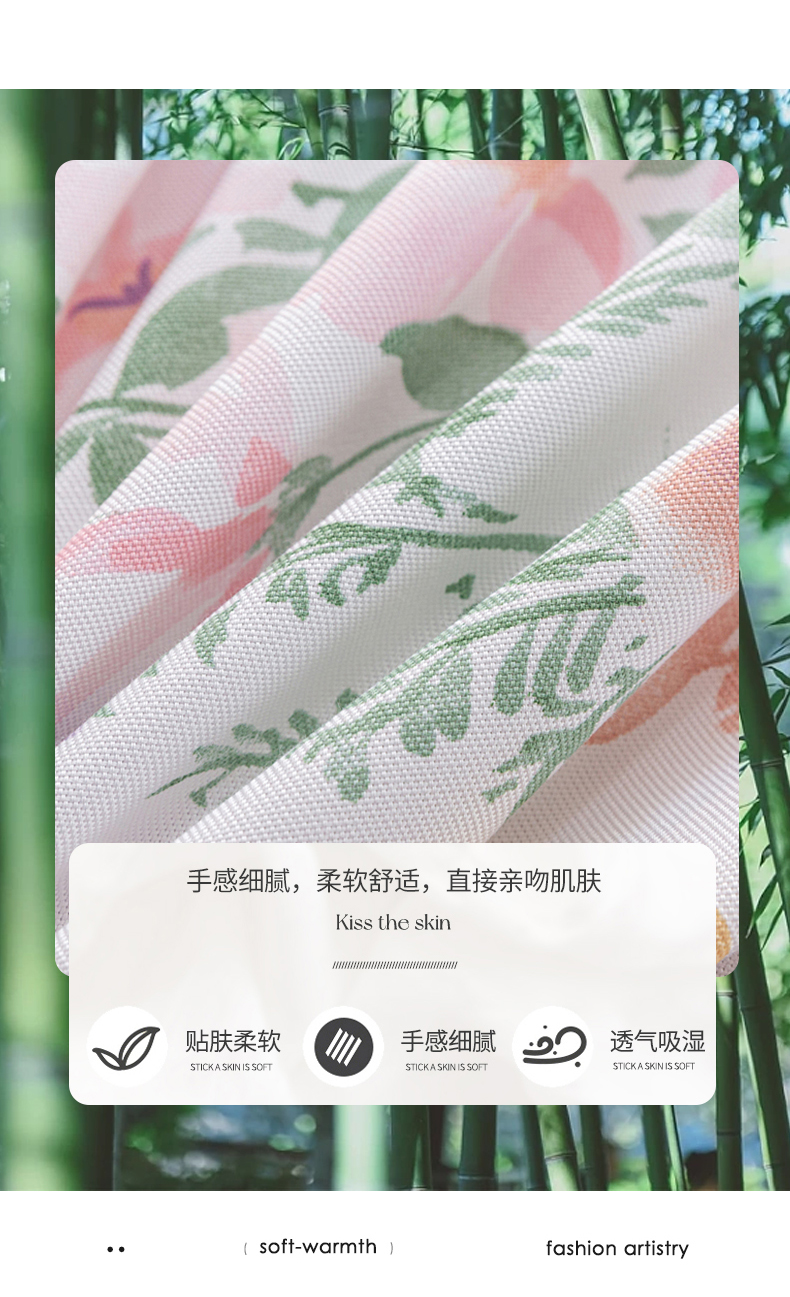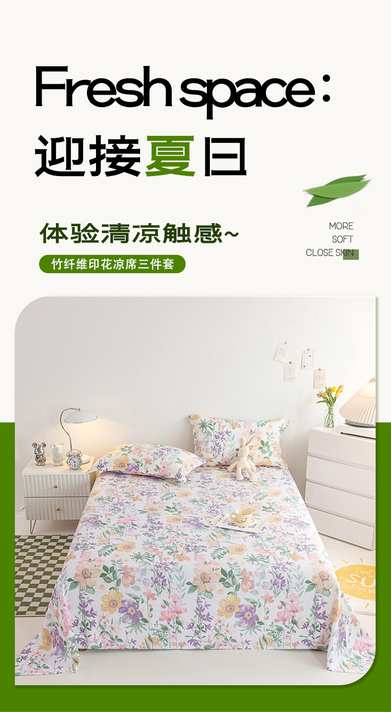 商品名称:金泰莱 2025新款印花竹纤维凉席三件套软凉席竹席盖毯子 鸿韵-粉