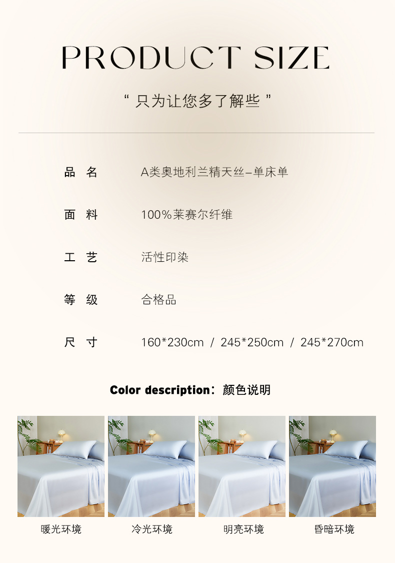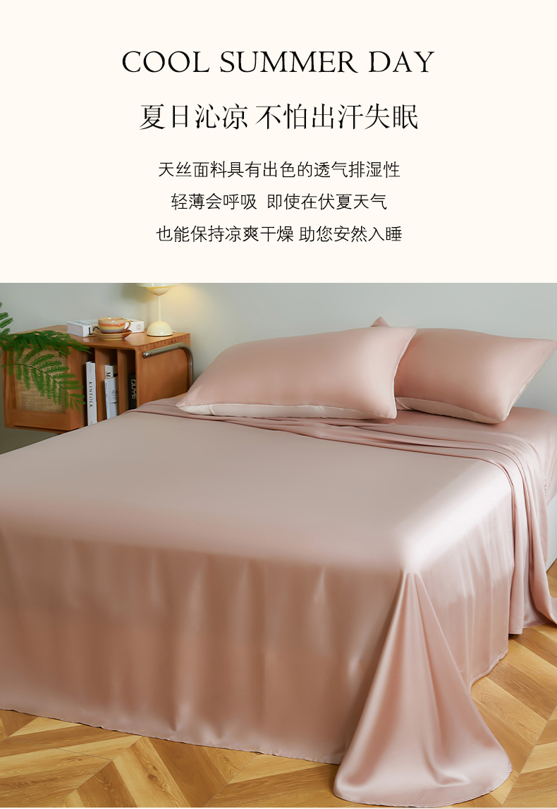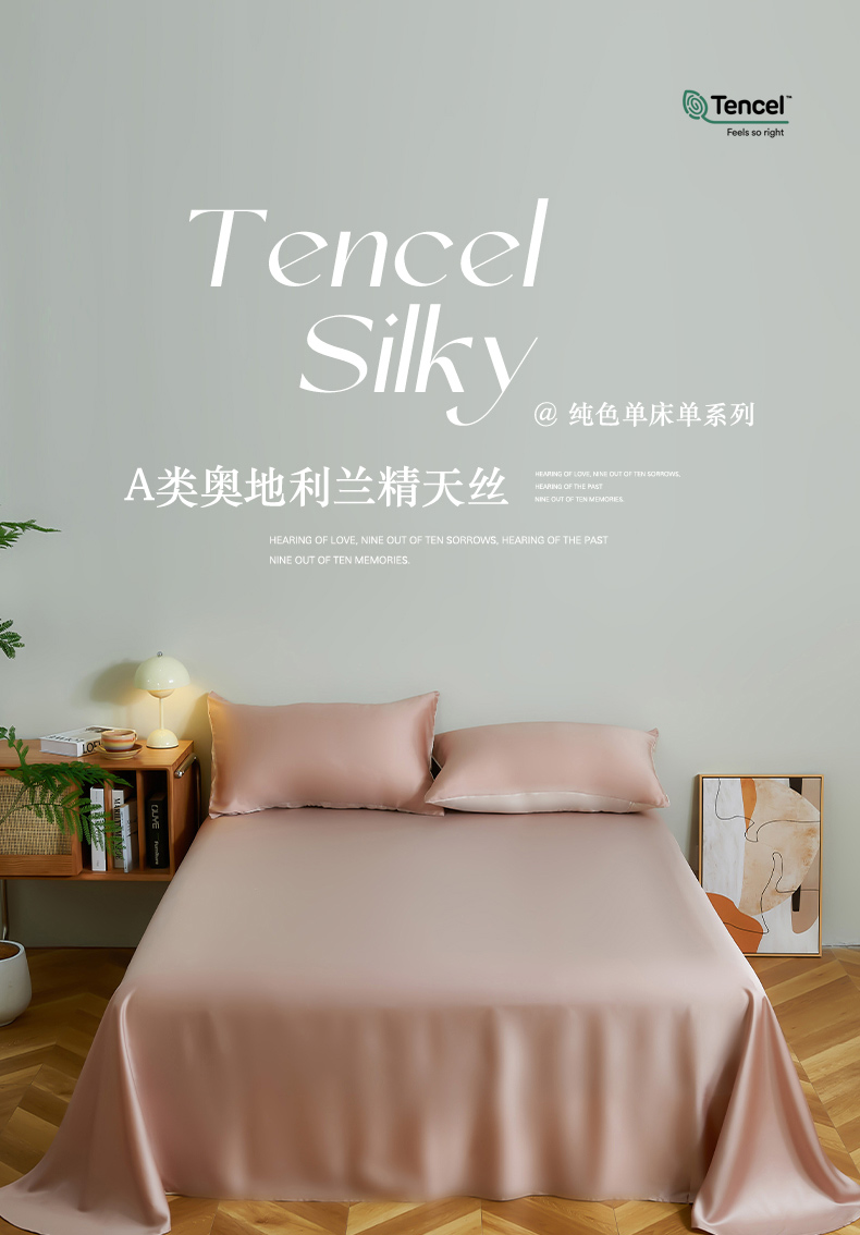 商品名称:云栖家居 202460支A类兰精天丝系列单品床单(风格二) 灰粉