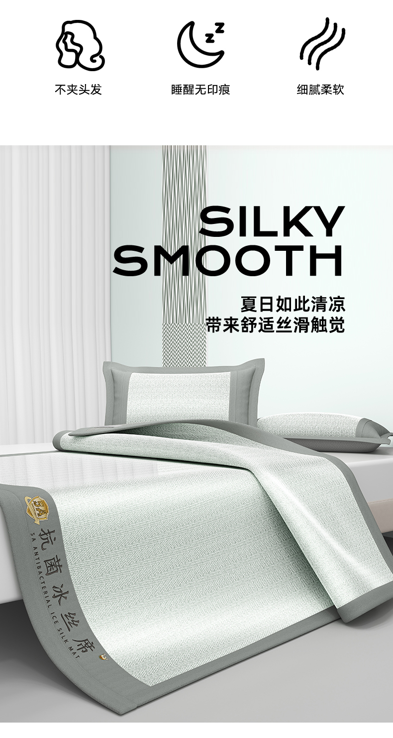 商品名称:鑫姿席业 2025新款亲肤舒适5A抗菌冰丝席 云母灰(床笠款)