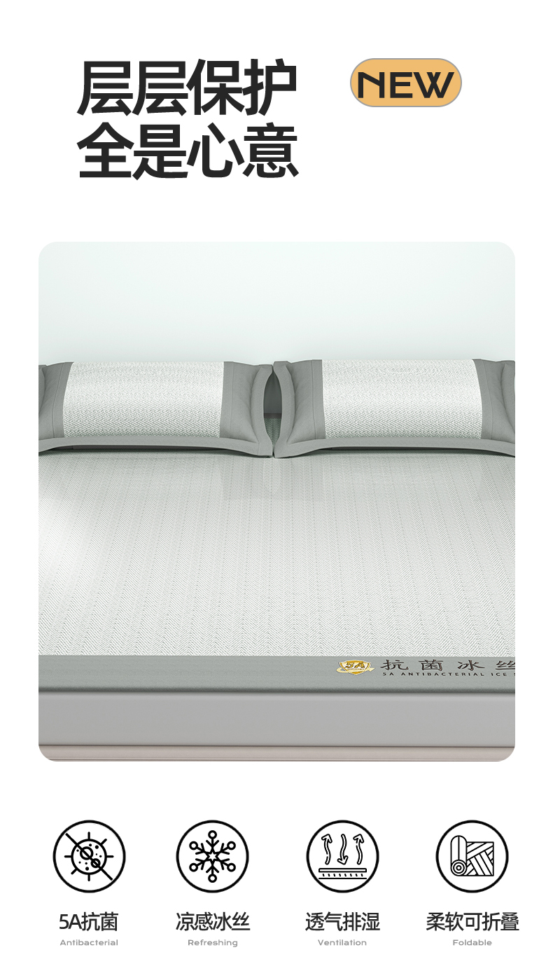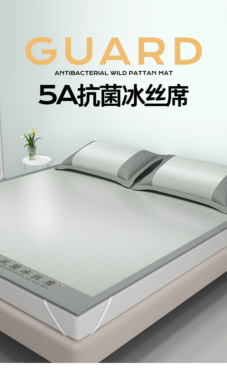 鑫姿席业 2025新款亲肤舒适5A抗菌冰丝席 云母灰(床笠款)