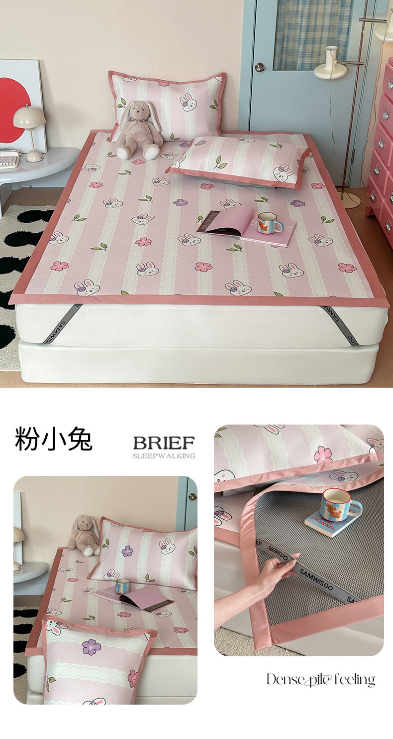商品名称:三味舒屋 2025新款抗菌防螨900D养生细冰藤凉席-床席款 粉小兔