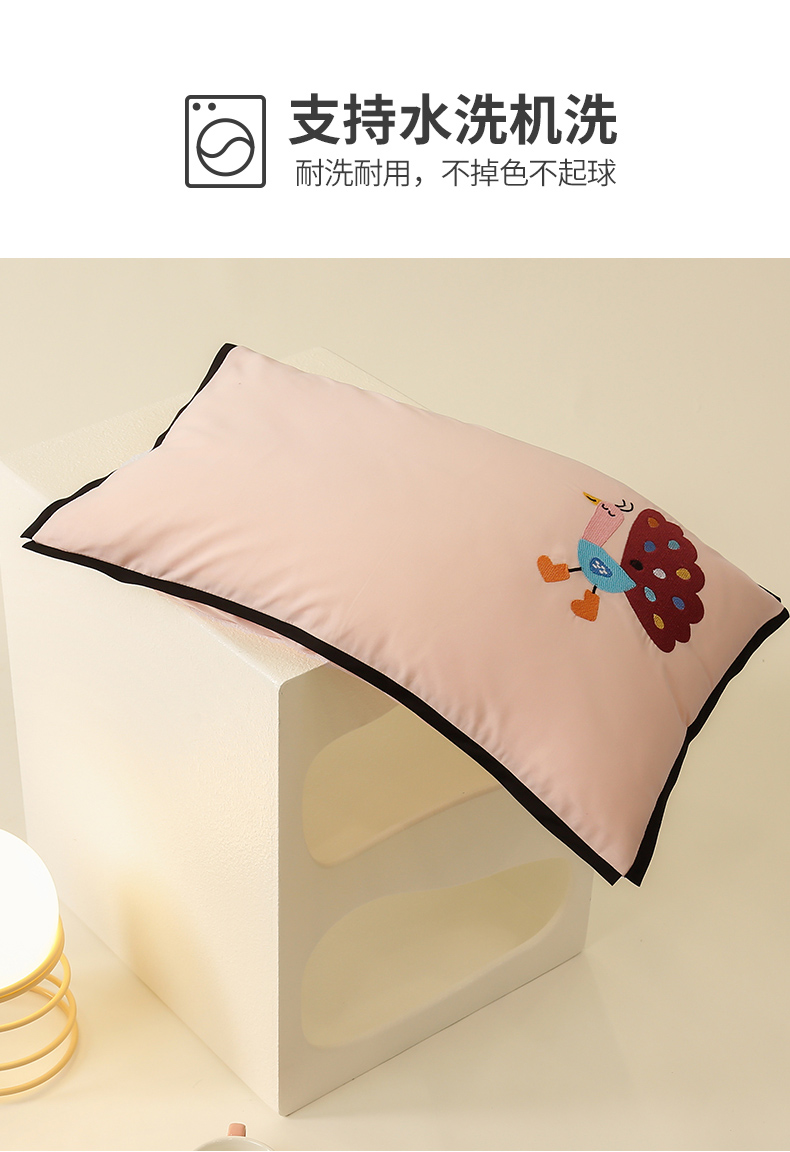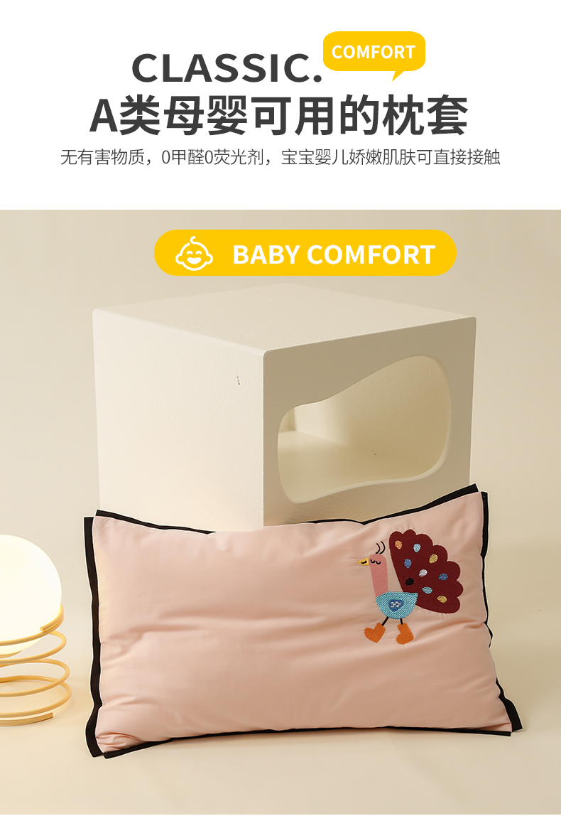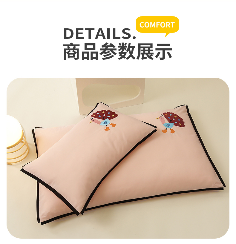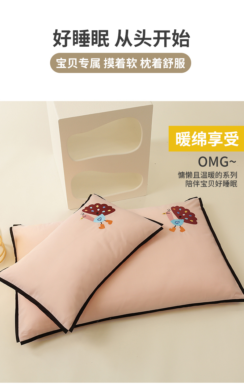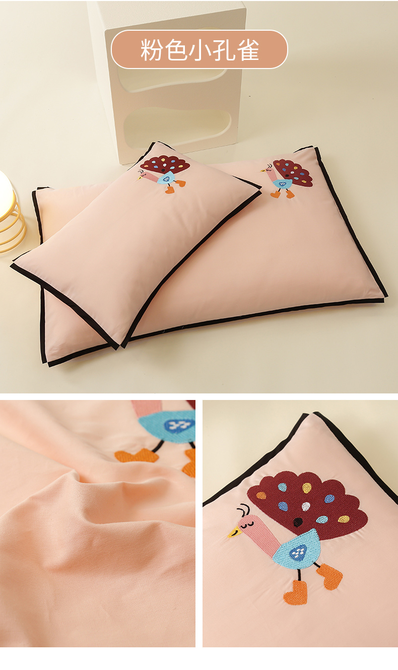 商品名称:喜多兔儿童家纺 2024新款高精密纯棉水洗棉枕套 粉色小孔雀