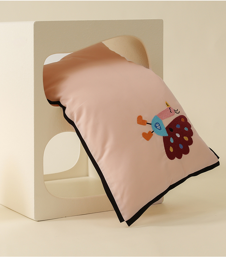 喜多兔儿童家纺 2024新款高精密纯棉水洗棉枕套 粉色小孔雀