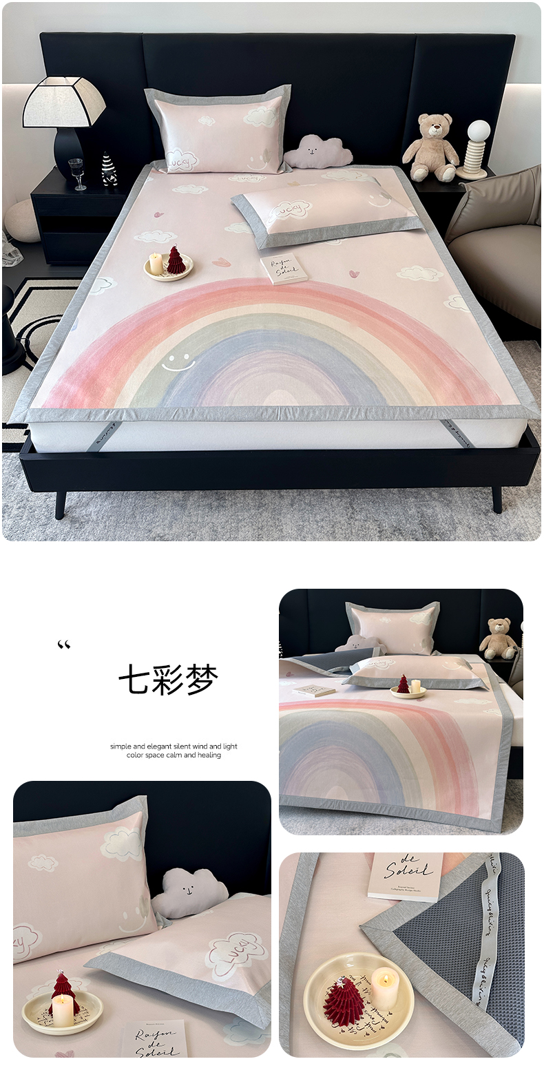 商品名称:JUICY 橘滋家纺 2024新款A类数码印花抑菌冰丝床席款床笠款软凉席套件 七彩梦(平席款)