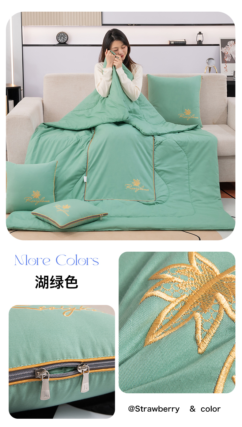 商品名称:吉利家居 2024新款全棉绣花抱枕被(四季款) 湖绿色