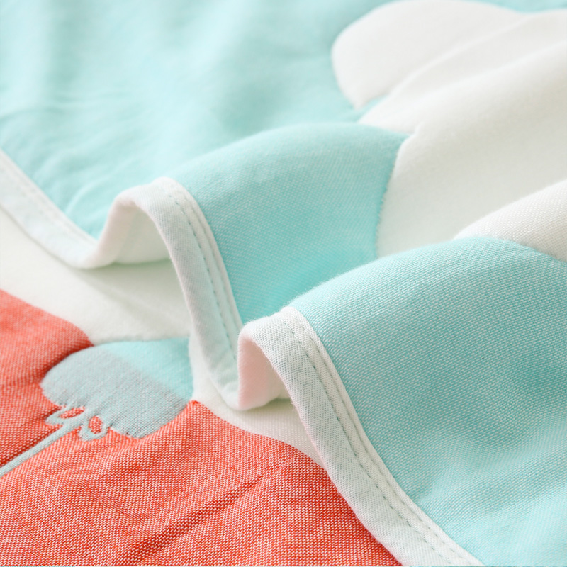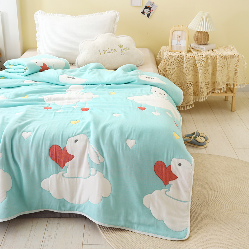 朴尔家纺-毛巾被 2024年全棉十层纱布加厚儿童盖被毛巾被 云朵兔绿