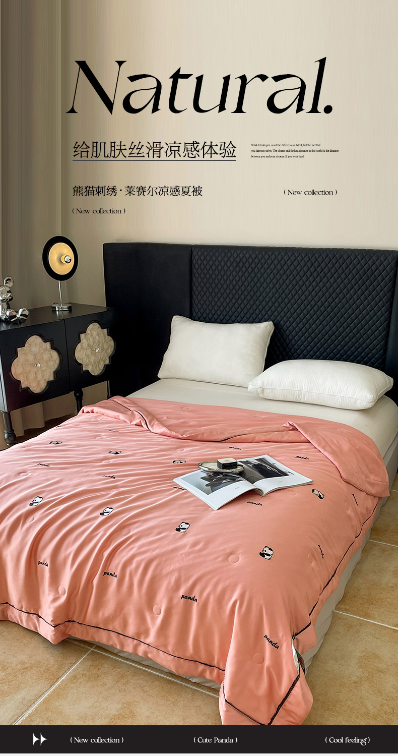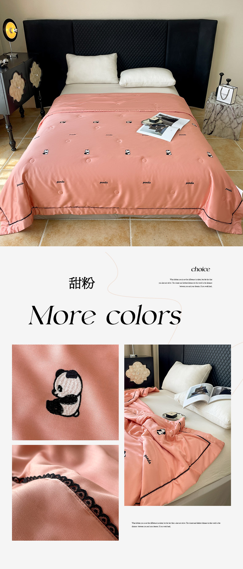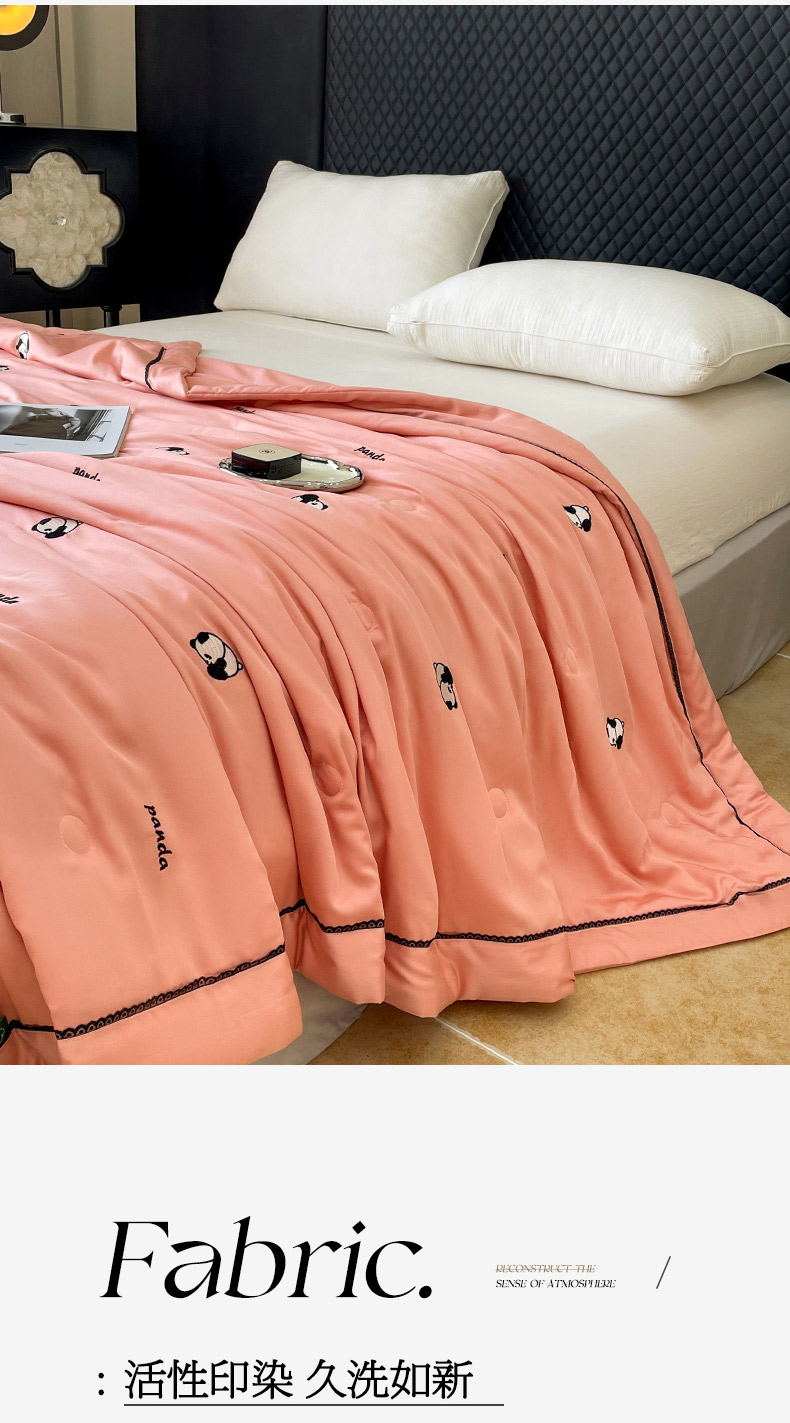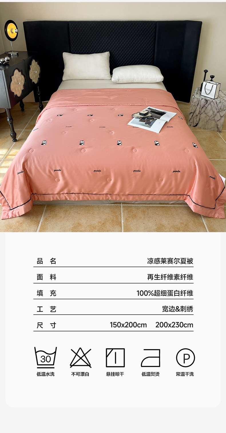 商品名称:被靠被 2024新款熊猫刺绣凉感莱赛尔夏被被子被芯 甜粉