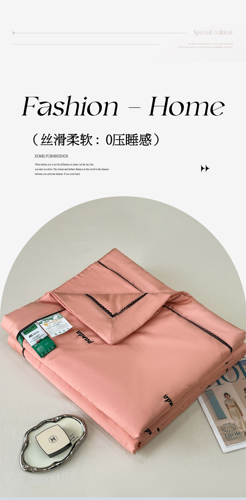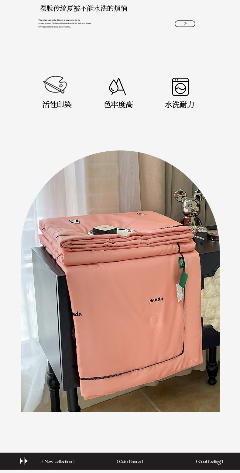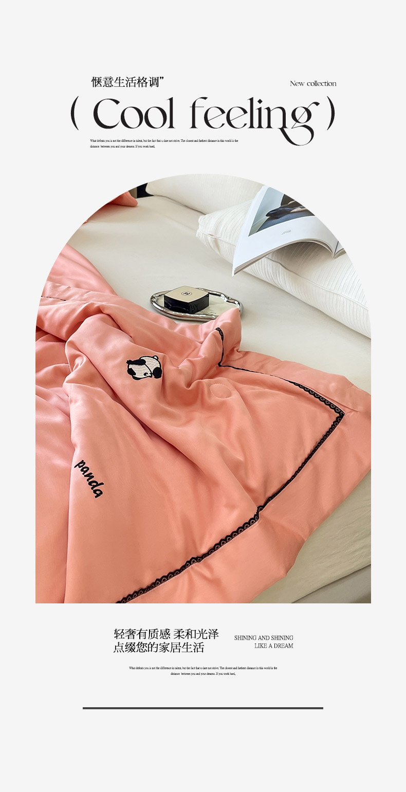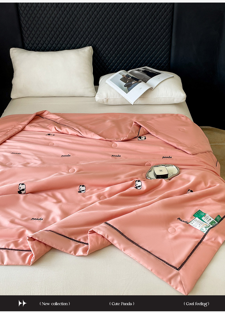 商品名称:被靠被 2024新款熊猫刺绣凉感莱赛尔夏被被子被芯 甜粉