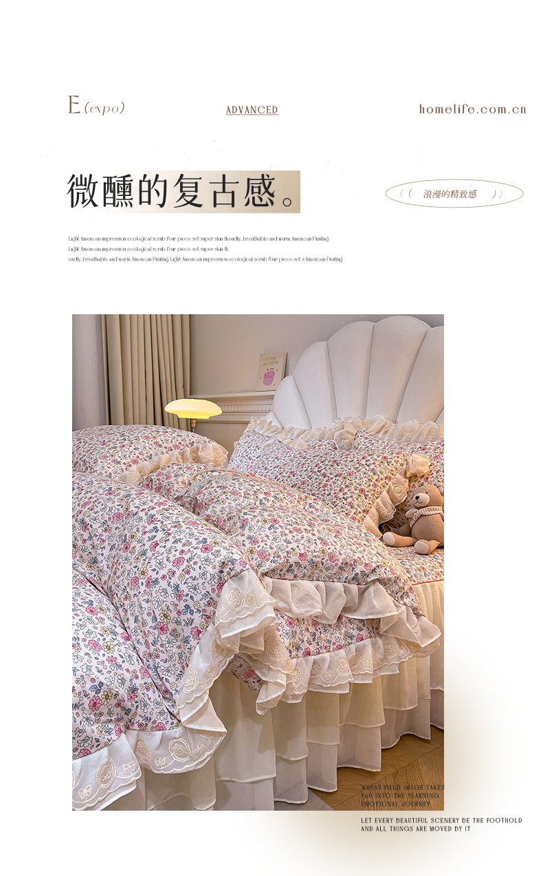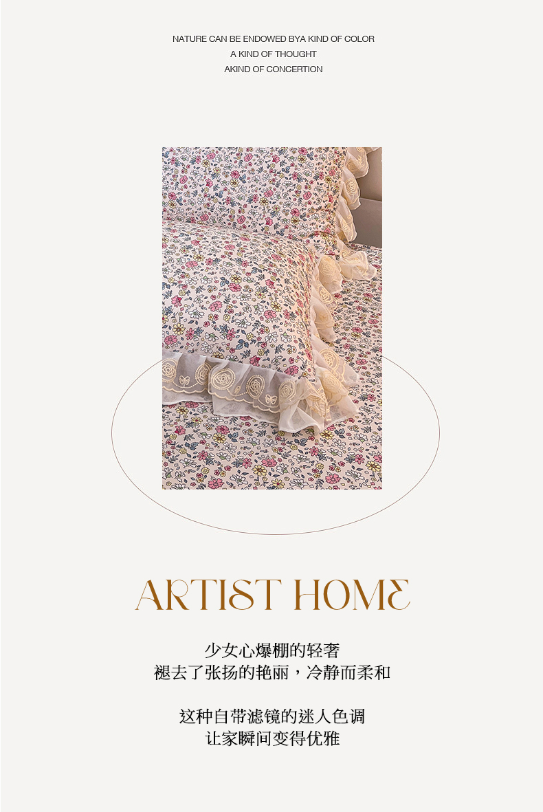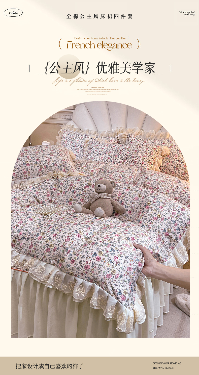 当前位置: 91家纺网 > 商品网购 > 床品套件 > 四件套 > 全棉普通四件套 > 恒爱家纺 2024新款梦幻情缘全棉公主风四件套 春花秋月