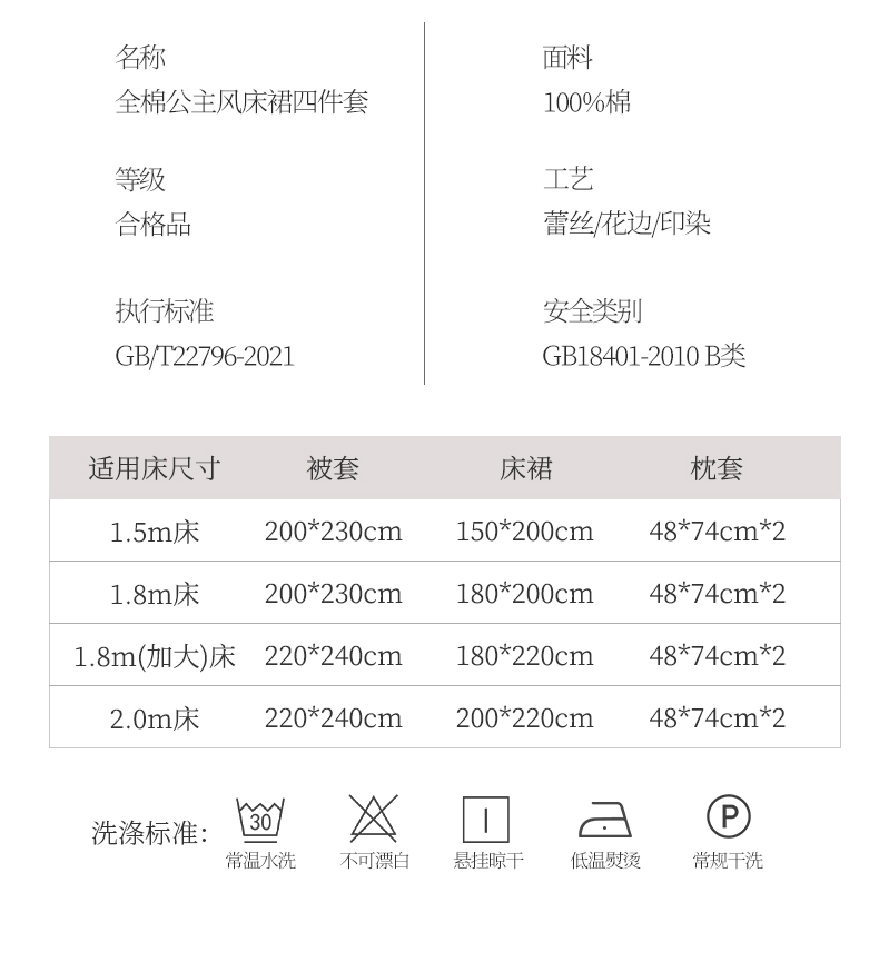 1.8*2.0床裙2.2被套四件套 | ¥185.00 |