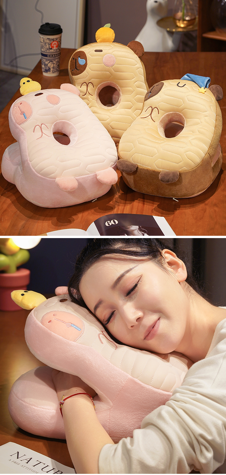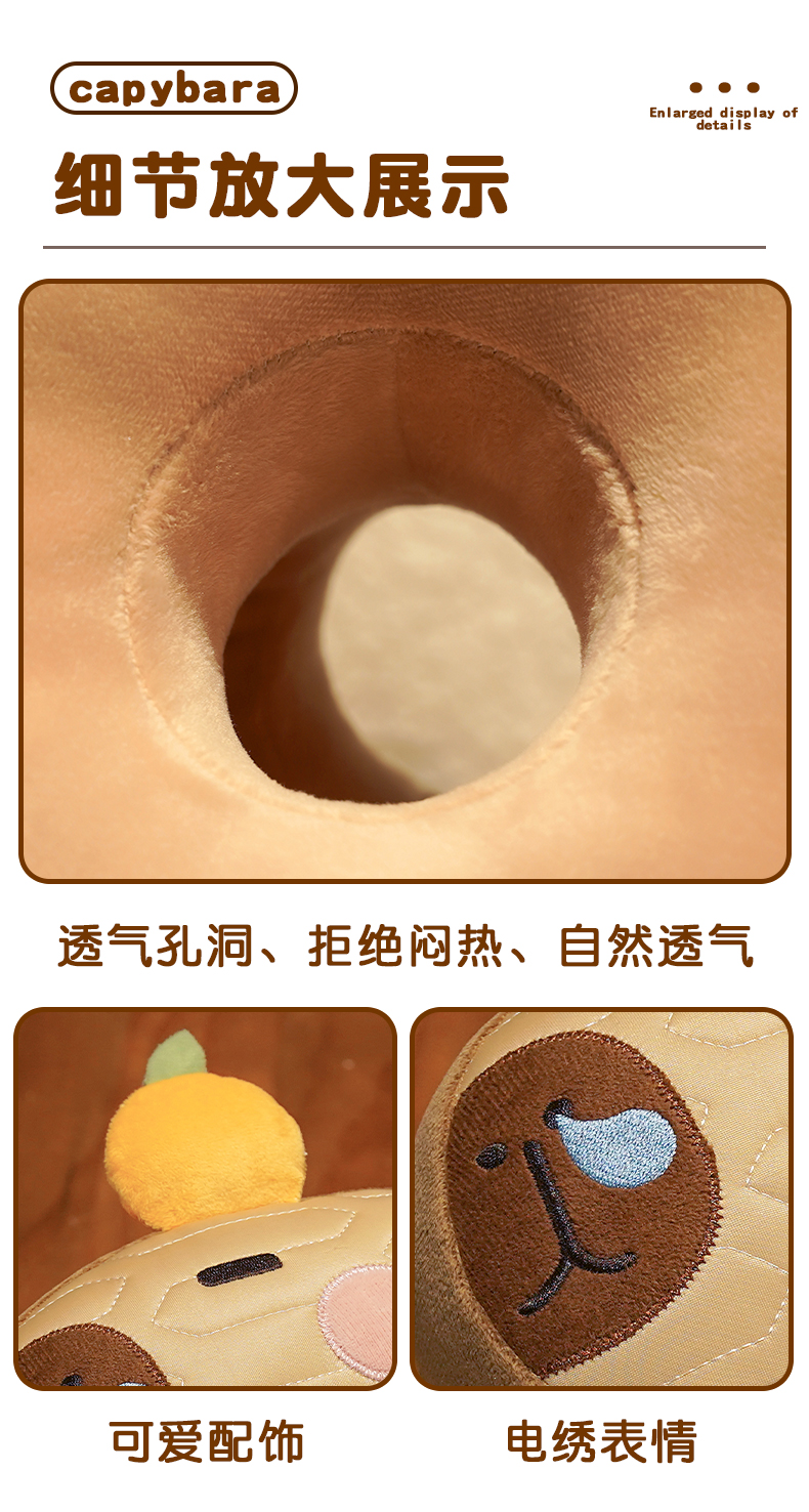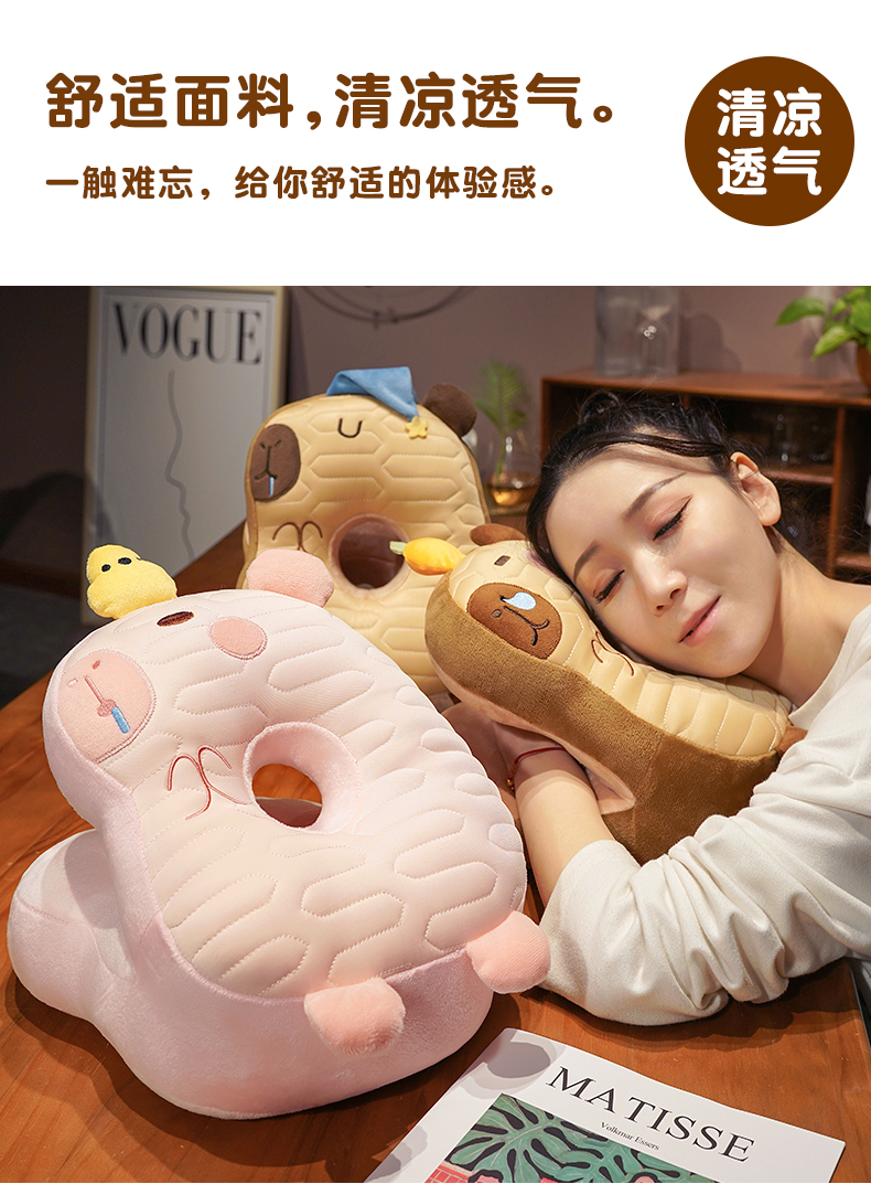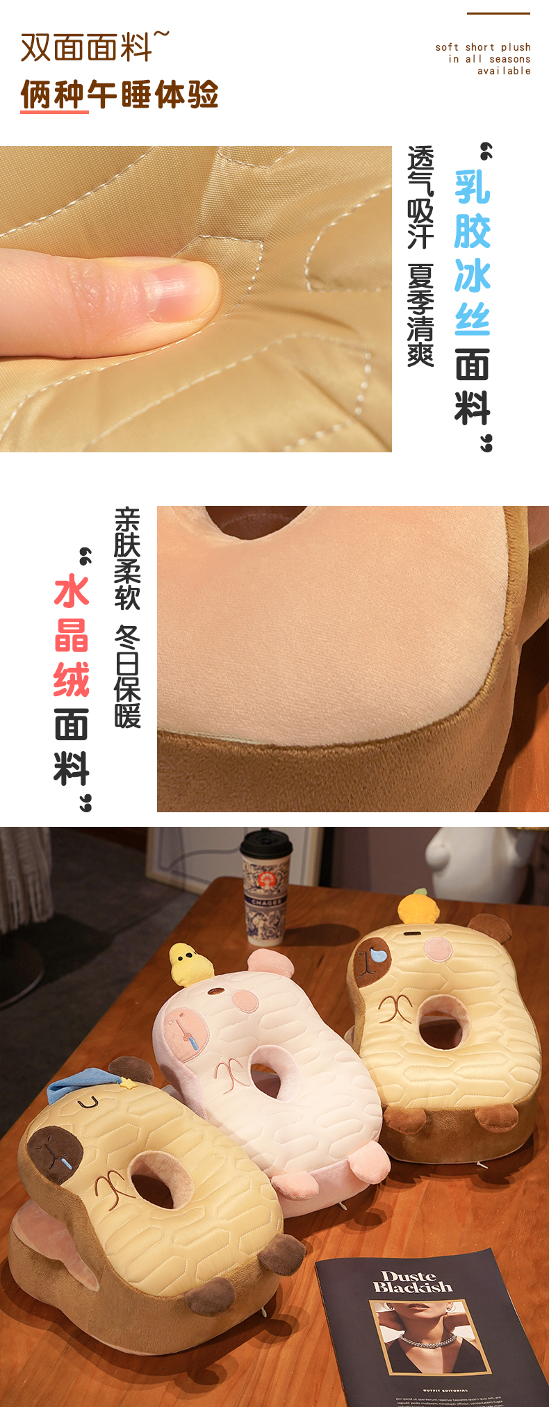 仟亿莱 2024新款佛系水豚乳胶冰丝午睡枕 乳胶带帽水豚午睡-1