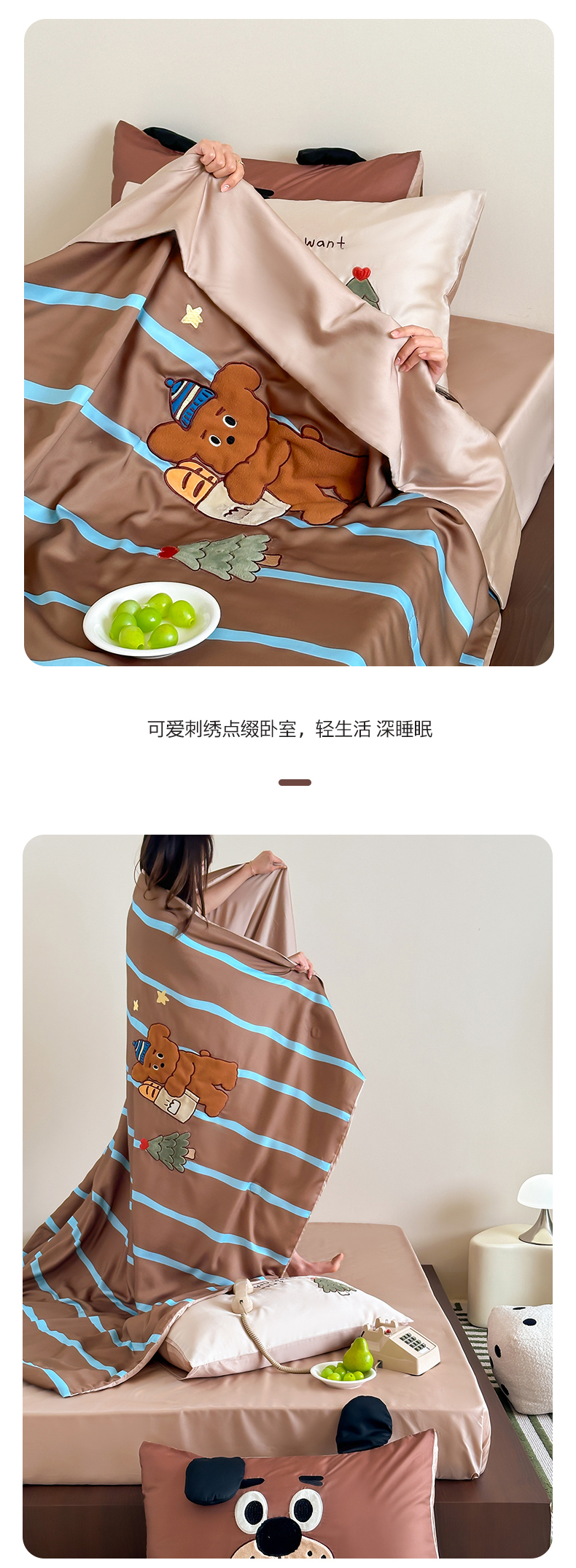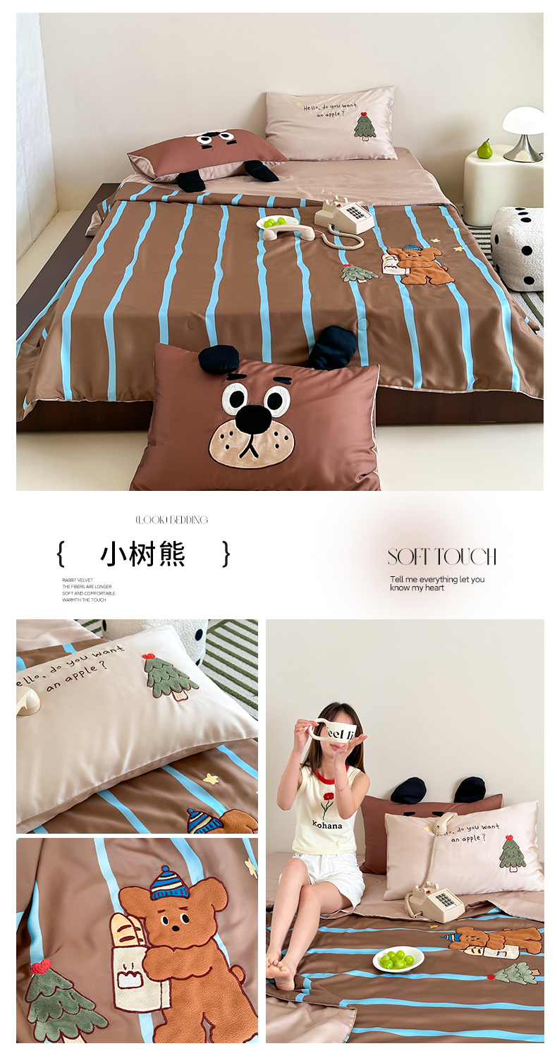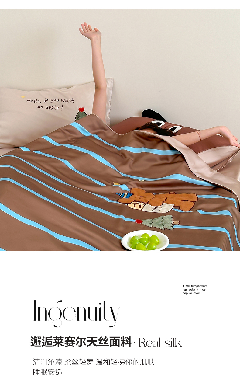 • 91家纺网 家纺一手货源 找家纺 黛舒家居 2024新款天丝条纹夏被款 小树熊
