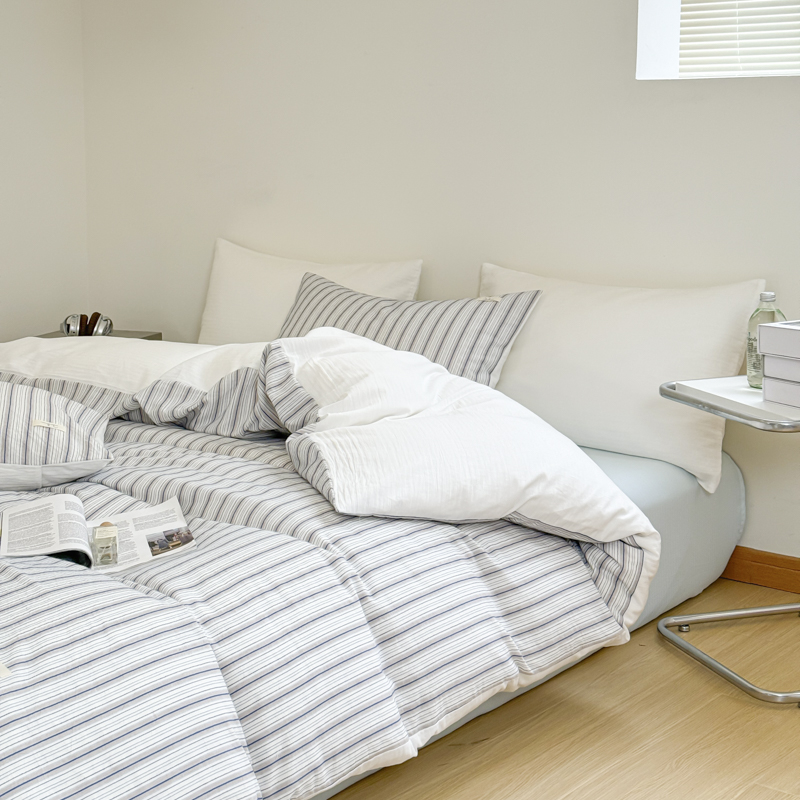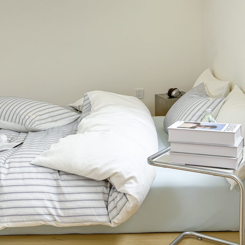 当前位置: 91家纺网 > 商品网购 > 床品套件 > 四件套 > 全棉普通四件套 > 玛奇朵 新款全棉色织立体提花四件套-海街日记 海街日记-蓝咖(搭配白色床单)