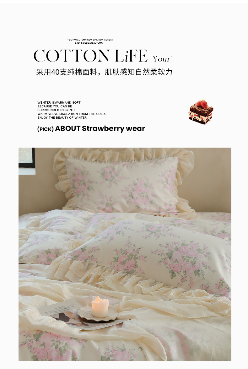 (总)菊上 2023新款全棉法式田园风欧根纱床盖四件套,蔷薇,草莓,幸运草,恋秋,花韵,柠檬果,维妮,小红帽,紫韵,格莱美,千寻,蜜兔,春色,香草集