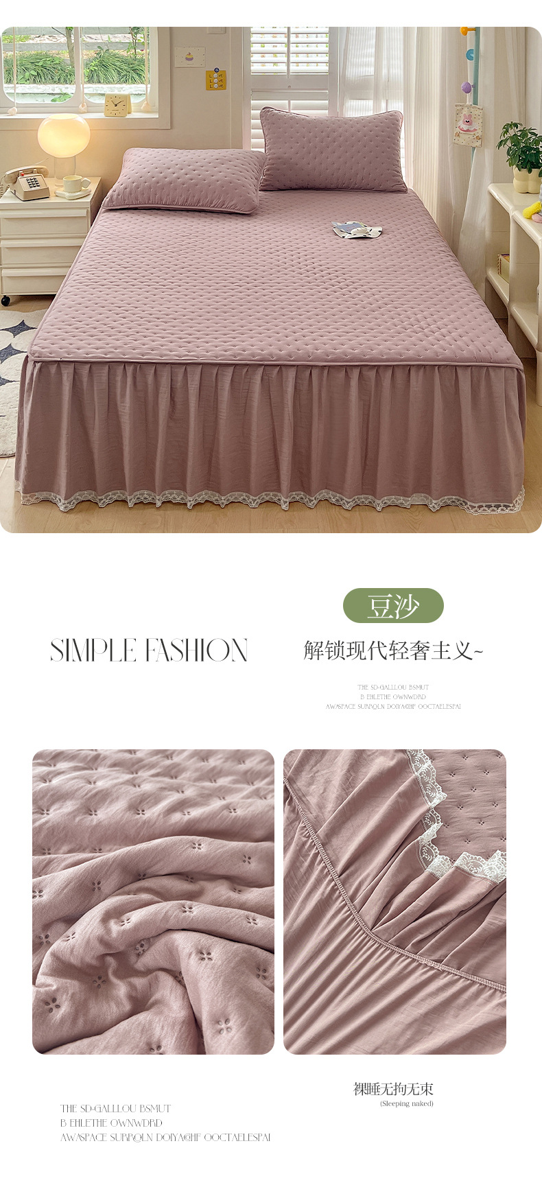 恩和家纺 2024新款米粒纹亲肤夹棉蕾丝床笠款床裙 豆沙
