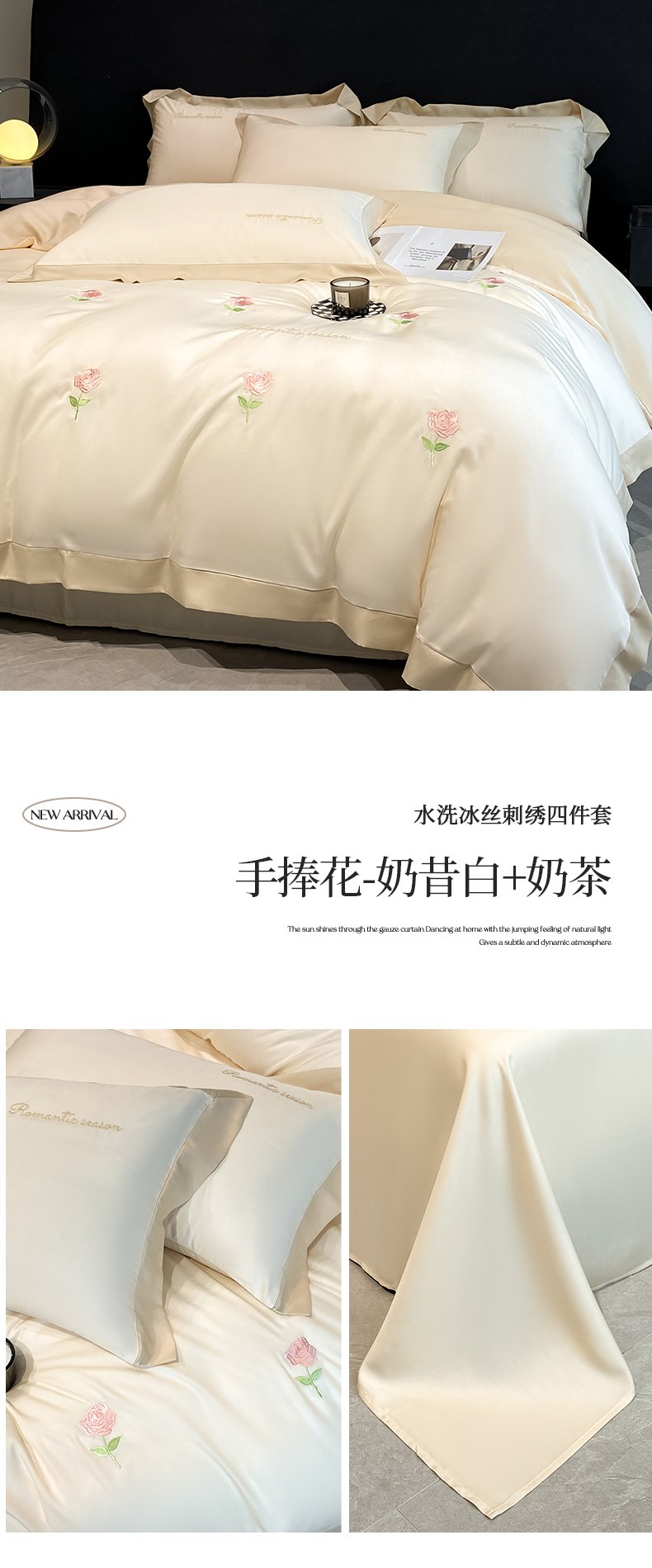 当前位置: 91家纺网 > 商品网购 > 床品套件 > 四件套 > 其它四件套 > 眷恋家纺 2024新款水洗冰丝刺绣四件套-花卉系列 手捧花-奶昔白+奶茶