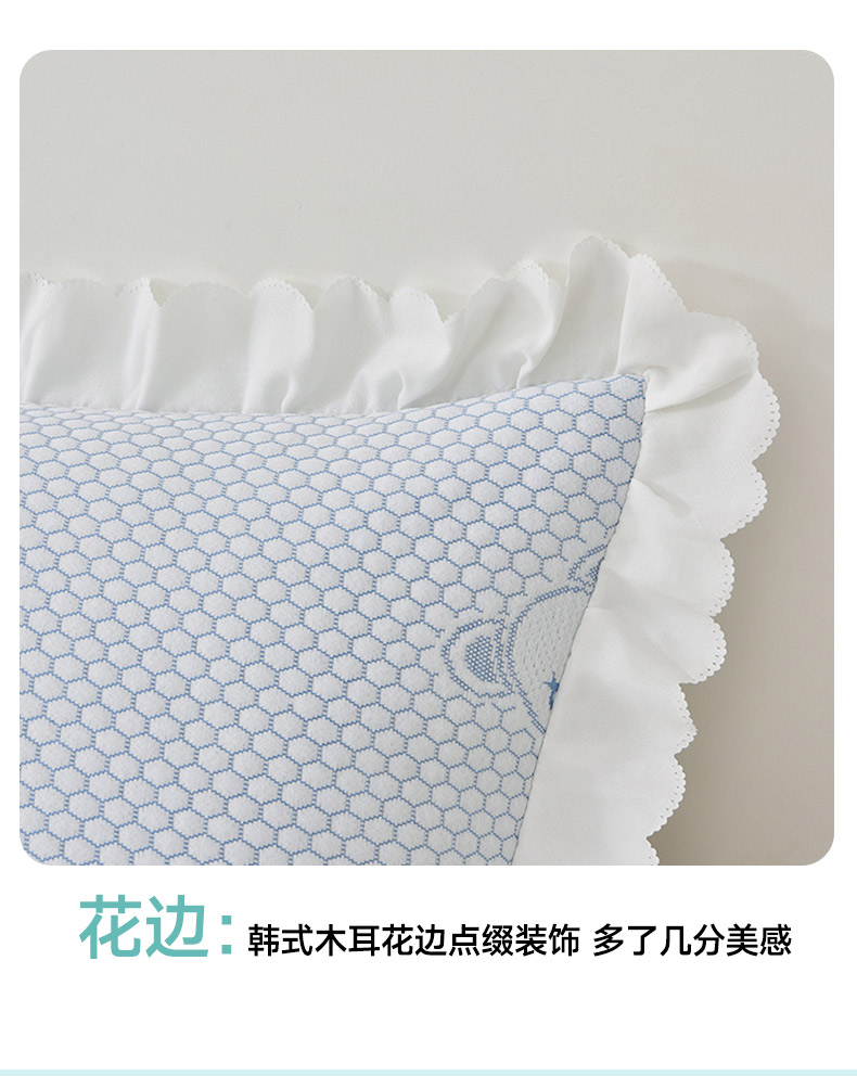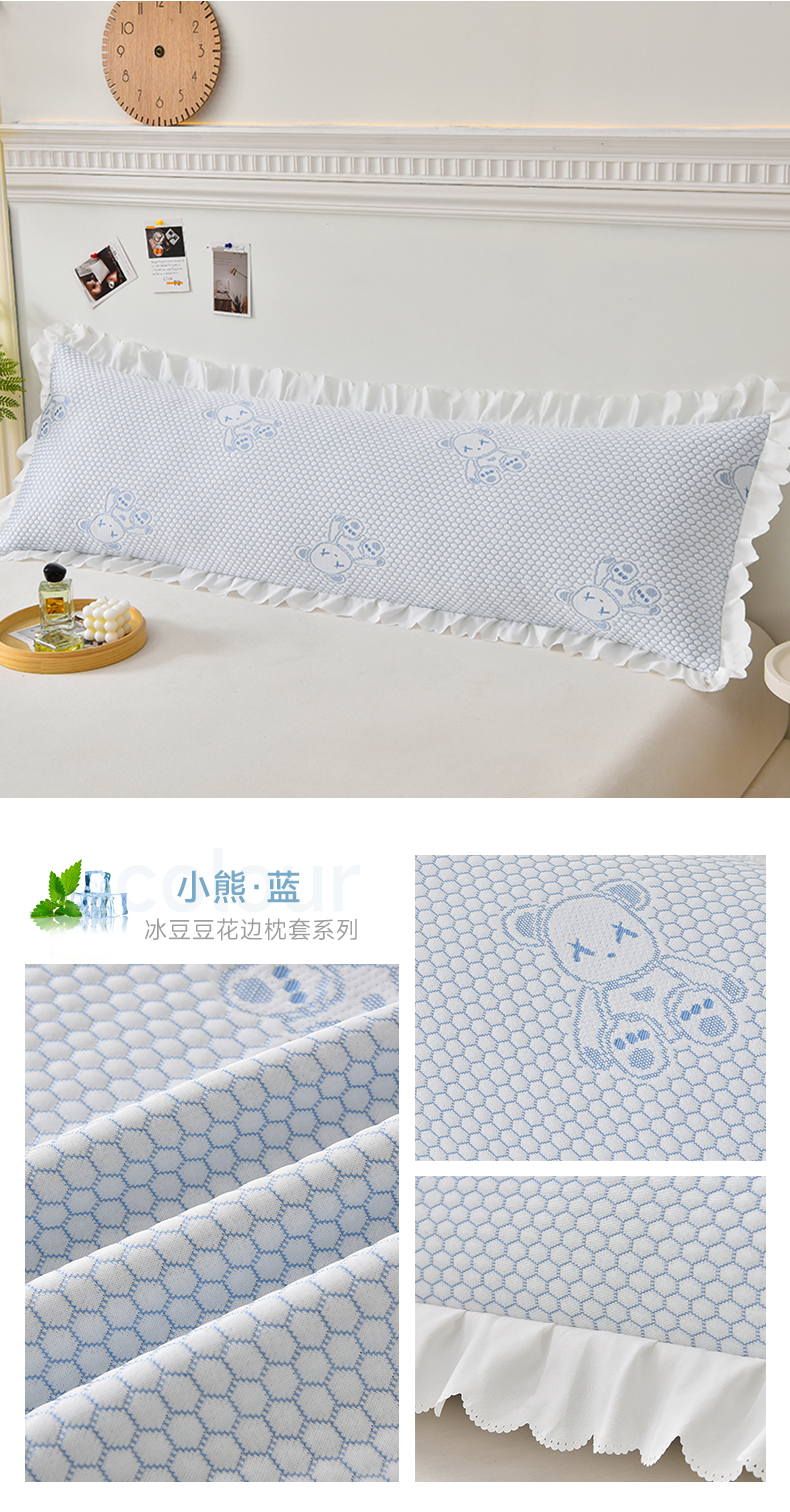 商品名称:艾兜坊 2024新款针织冰豆豆花边枕套 小熊·蓝