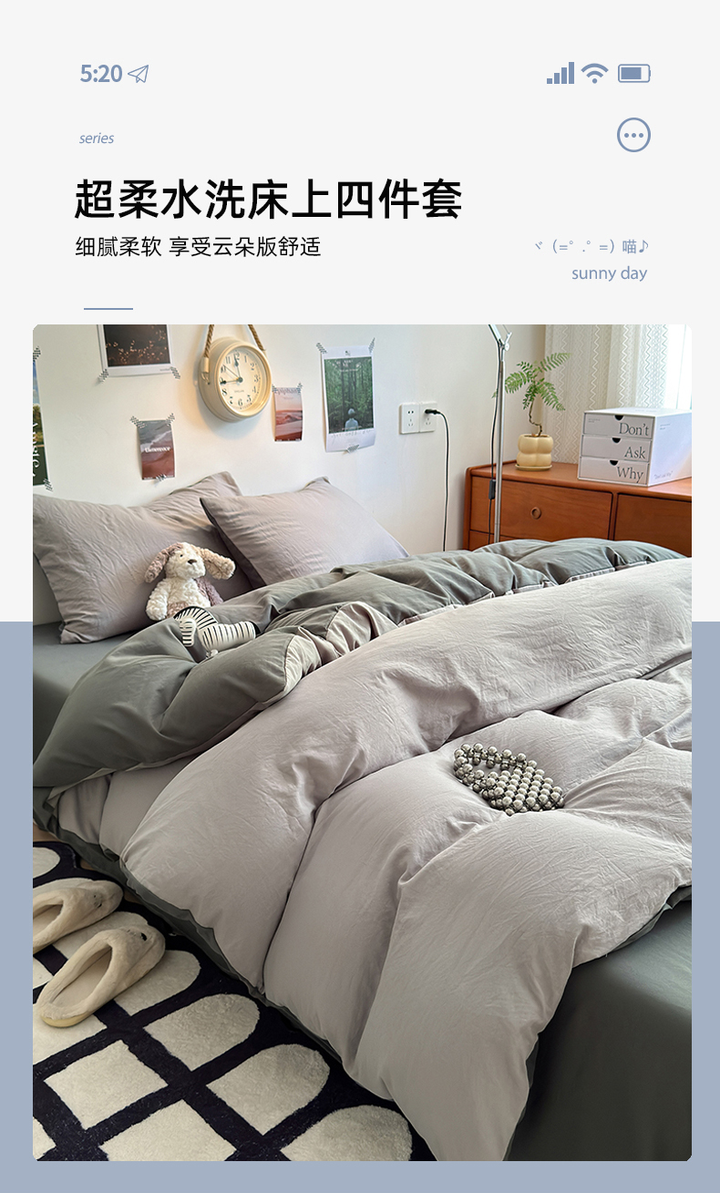 当前位置: 91家纺网 > 商品网购 > 床品套件 > 四件套 > 水洗棉四件套 > 沐芷 2024新款超柔105g纯色水洗棉四件套-柔雅系列 柔雅-中灰高及灰