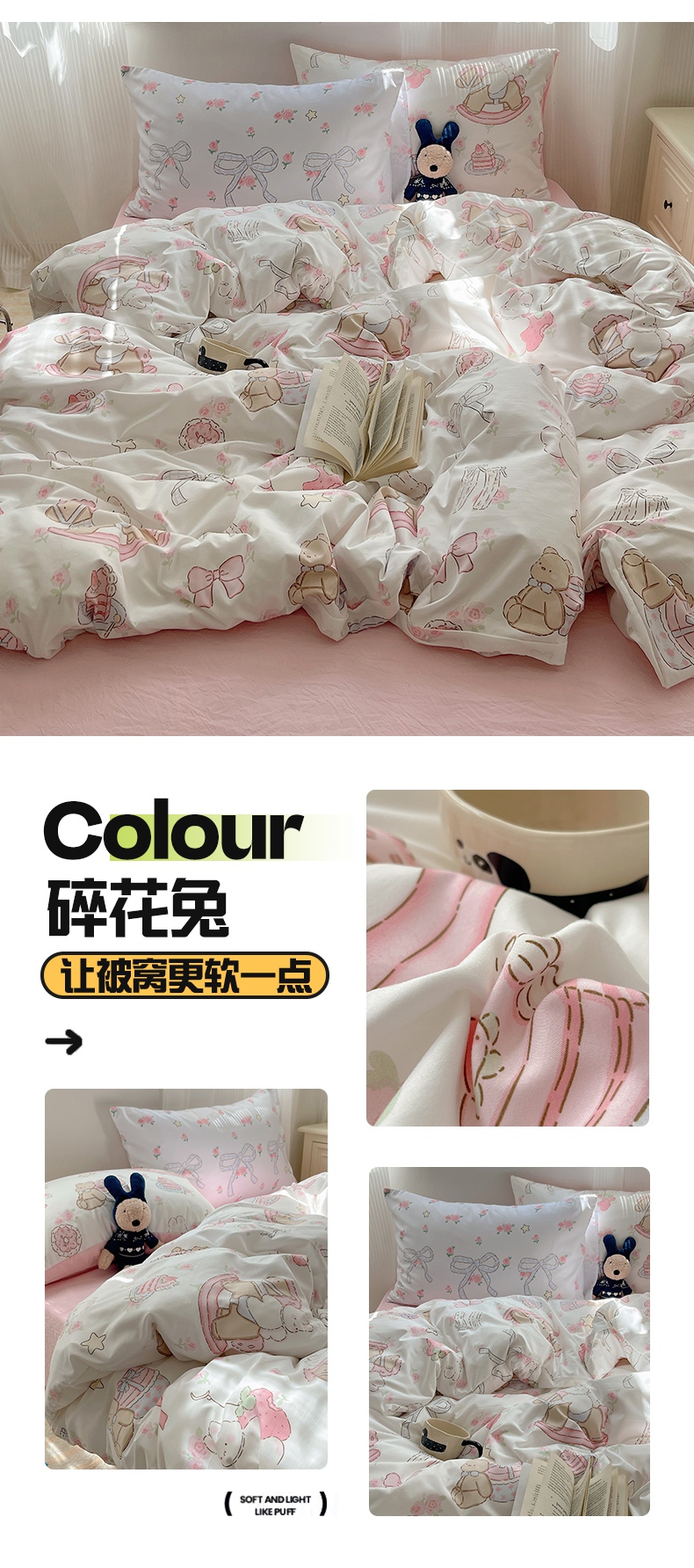 当前位置: 91家纺网 > 商品网购 > 床品套件 > 四件套 > 水洗棉四件套 > 轻奢坊 2024新款水洗棉可爱卡通四件套 碎花兔