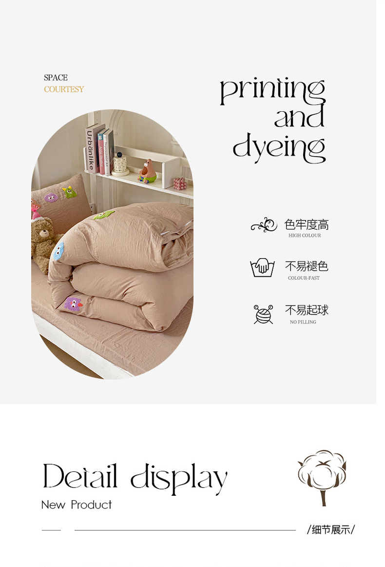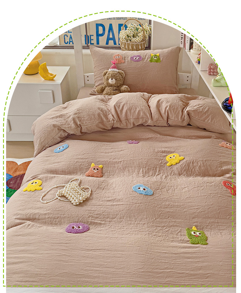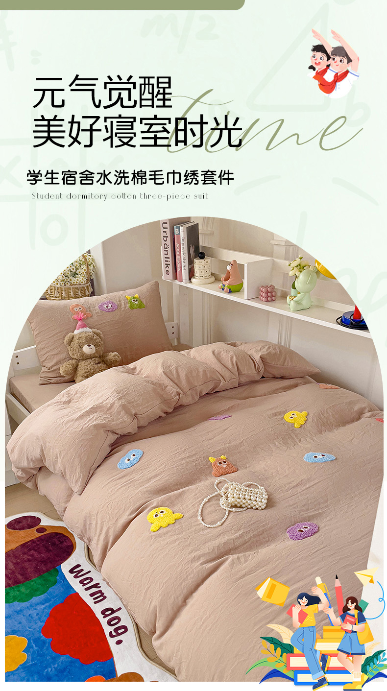 商品名称:韩巢家纺 2024新款超柔水洗棉毛巾绣学生宿舍上下铺单件被套-小精灵系列 小精灵奶咖