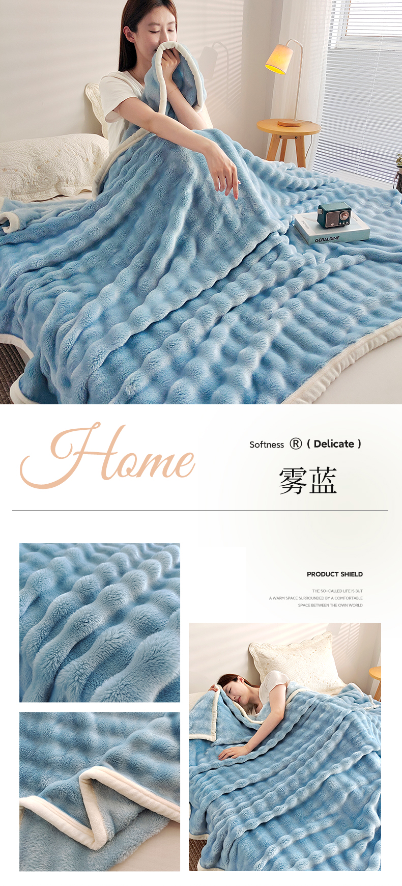 商品名称:美洲琳 2025新款多功能仿兔毛泡泡绒空调毯 雾蓝