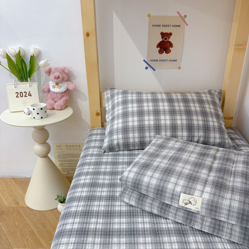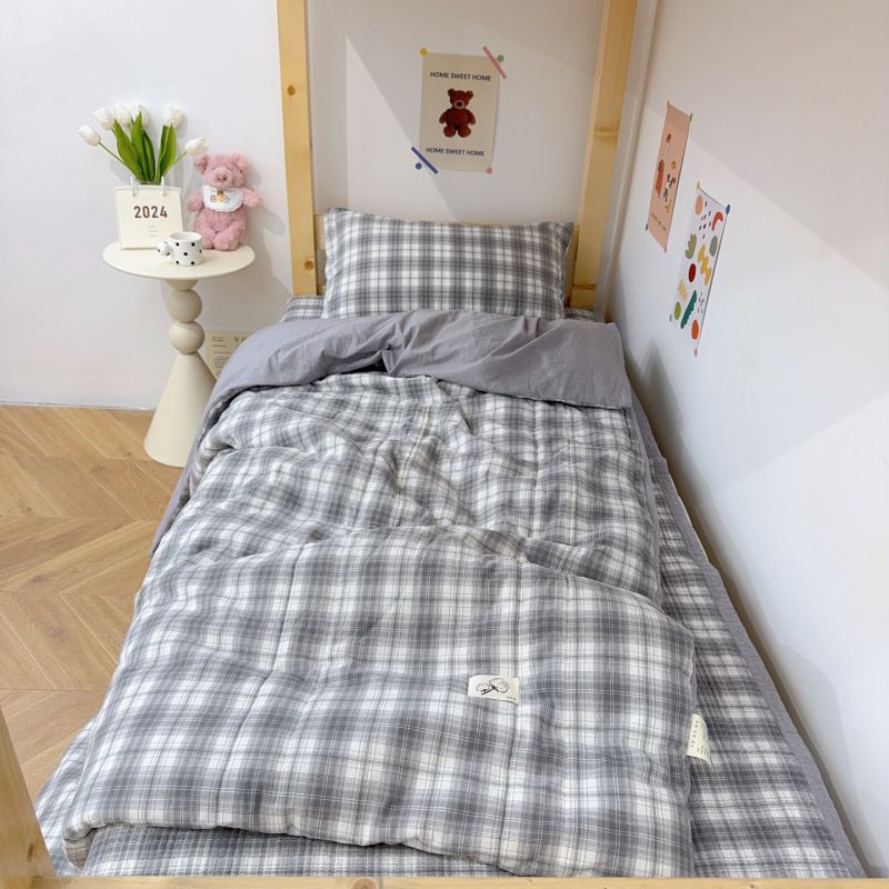 2024新款学生三件套多功能被套 水洗棉床盖 砂洗床盖 床盖三件套 中灰格