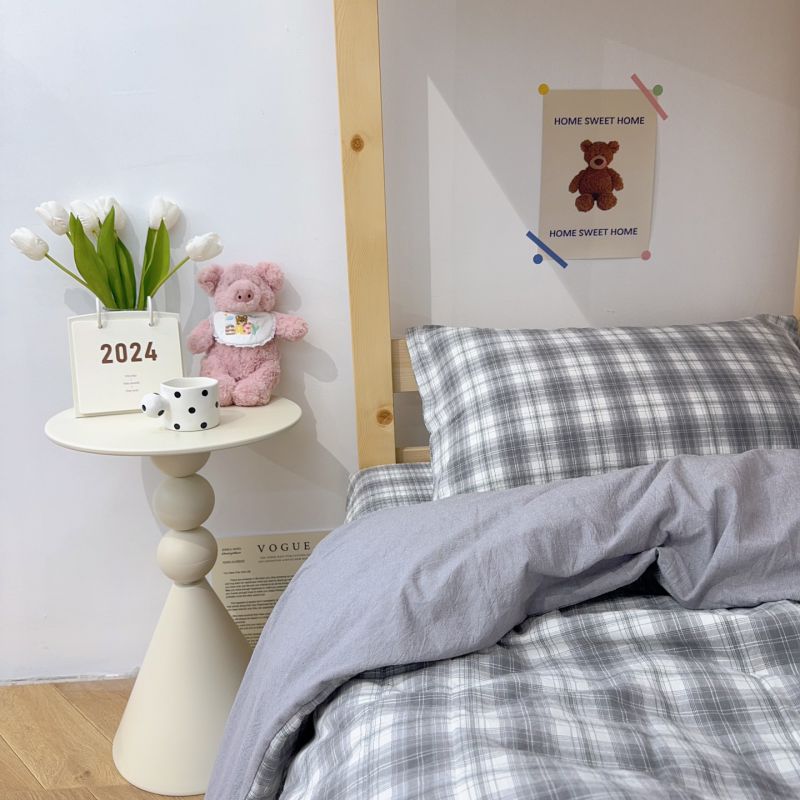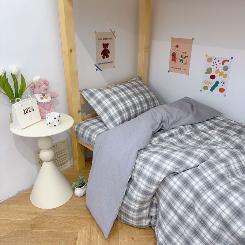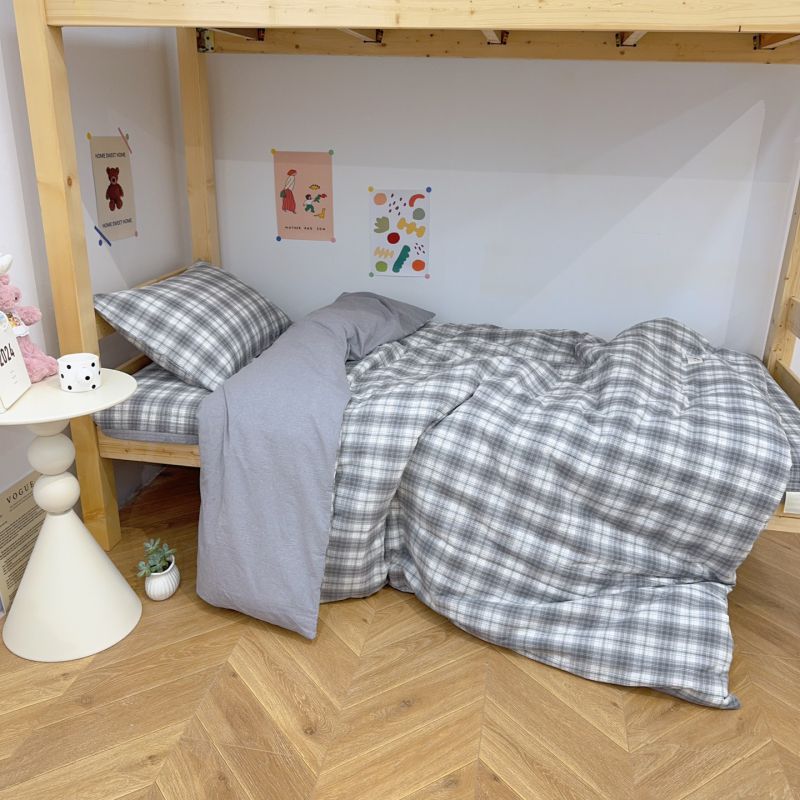 商品名称:2024新款学生三件套多功能被套 水洗棉床盖 砂洗床盖 床盖三件套 中灰格