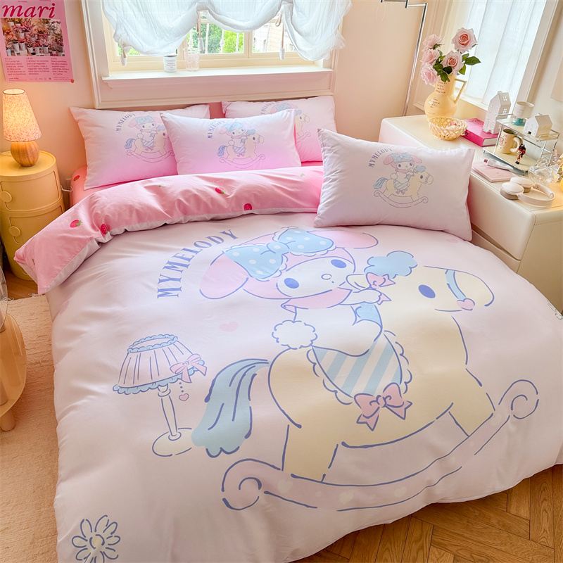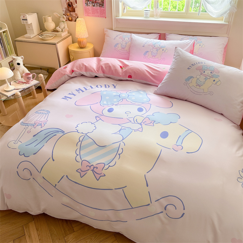 当前位置: 91家纺网 > 商品网购 > 床品套件 > 四件套 > 全棉普通四件套 > 名兮家居 2024新款三丽鸥全棉13372大版数码印花四件套【含防伪标】 童年