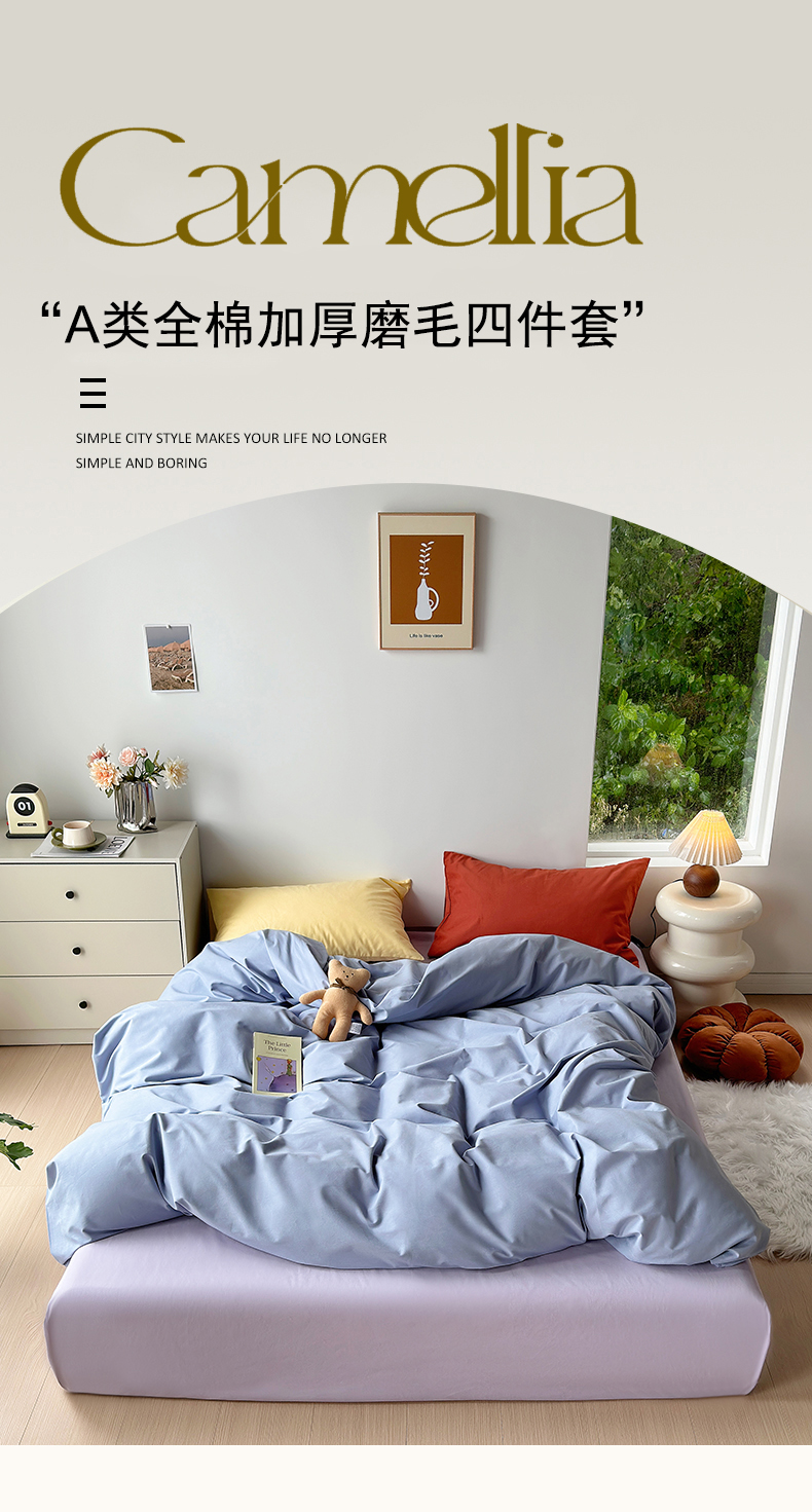 当前位置: 91家纺网 > 商品网购 > 床品套件 > 四件套 > 普通磨毛四件套 > 绫韵家纺 2024秋冬新款A类全棉加厚磨毛混搭纯棉磨毛四件套 光辉·紫藤·麦秆黄·橘红