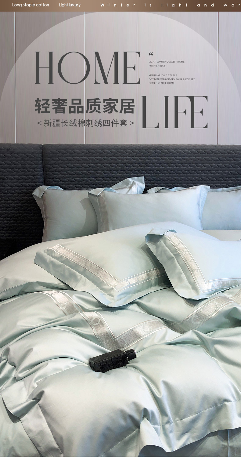 当前位置: 91家纺网 > 商品网购 > 床品套件 > 四件套 > 全棉普通四件套 > 【春夏新品】轻奢高级感100支长绒棉四件套全棉纯棉刺绣酒店风拼接被套纯色床单床上用品 曼哈顿-梵星蓝
