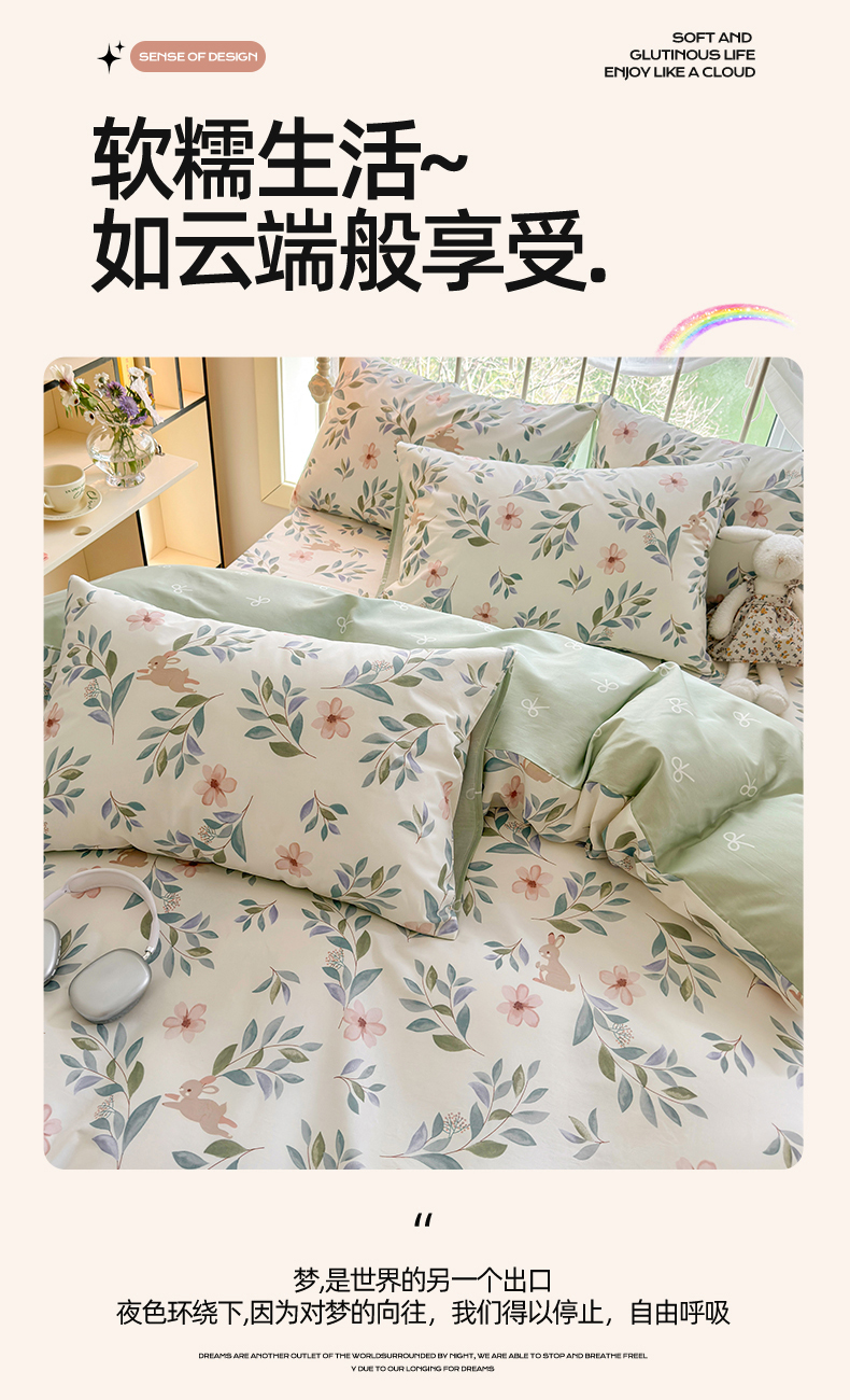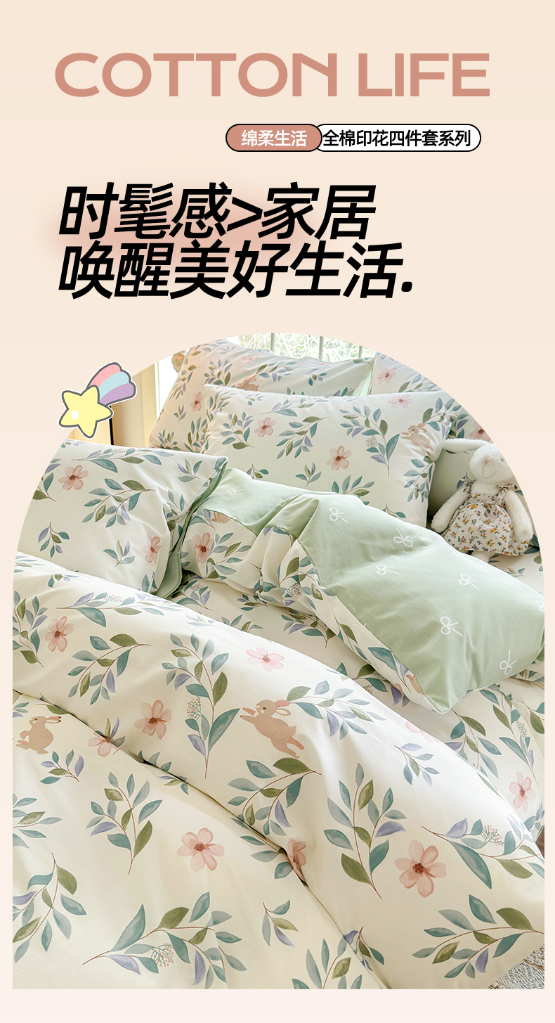 当前位置: 91家纺网 > 商品网购 > 床品套件 > 四件套 > 全棉普通四件套 > 名兮 2024新款全棉亲肤印花四件套 轻纱漫舞