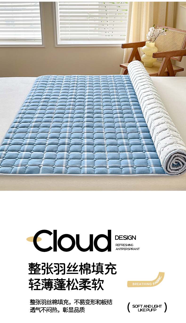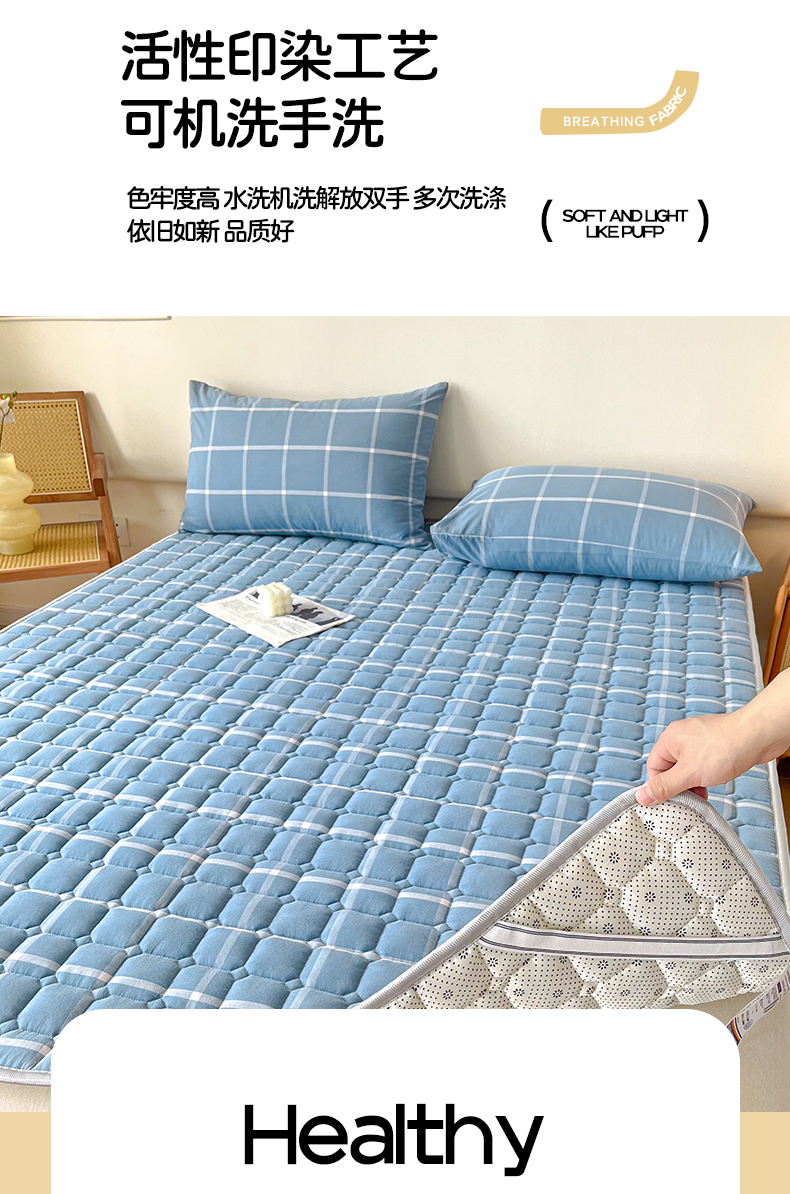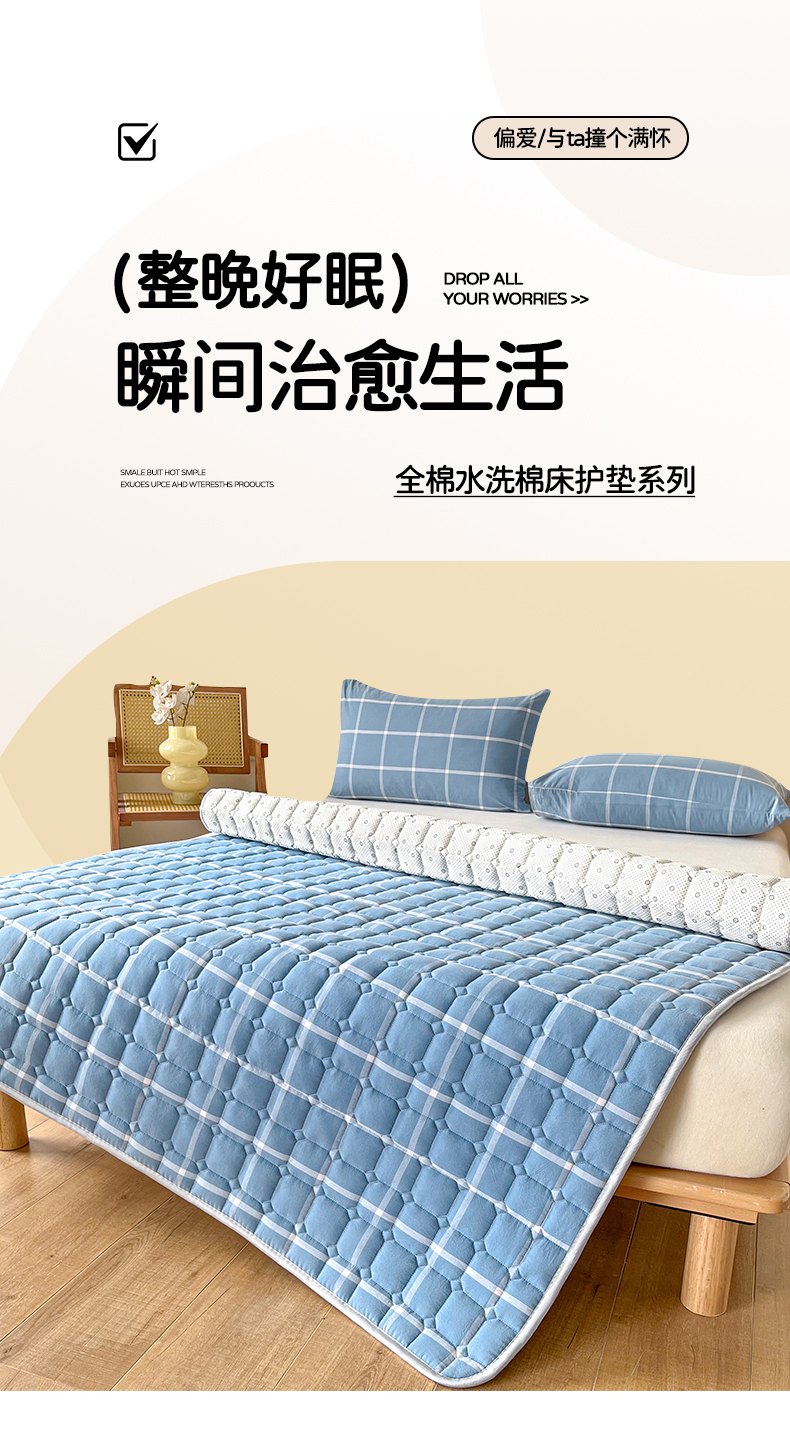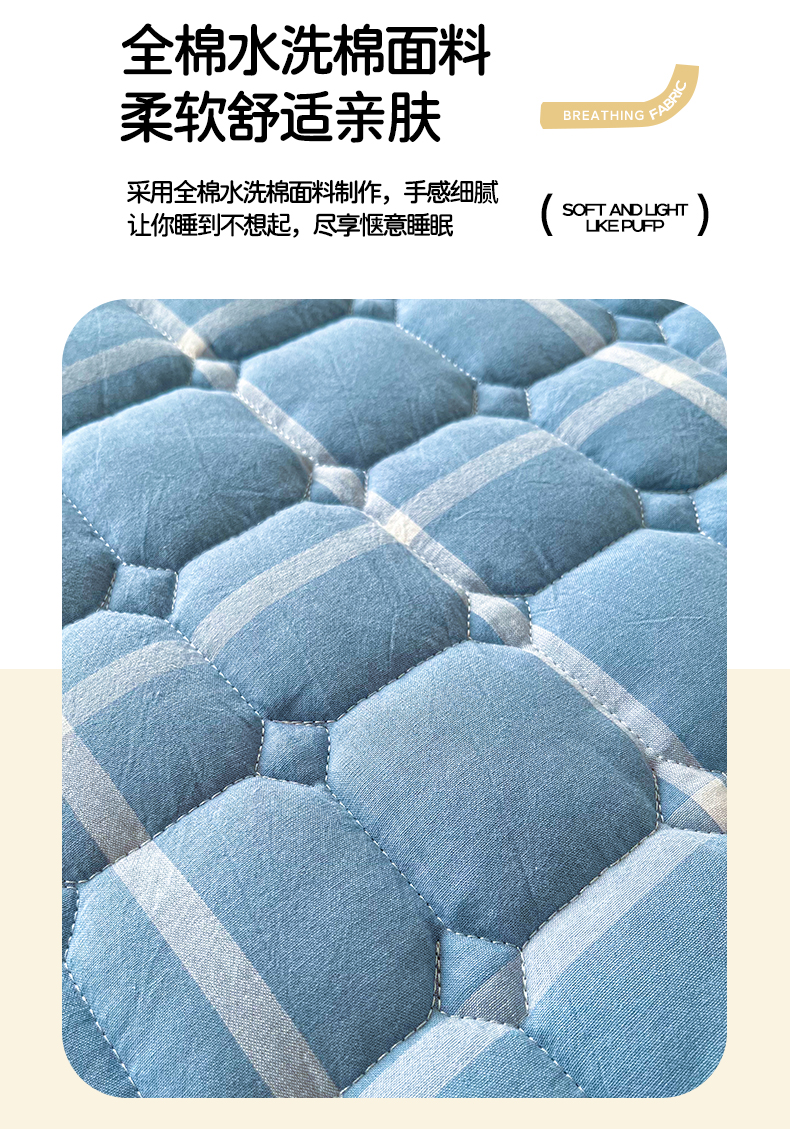 当前位置: 91家纺网 > 商品网购 > 床垫/床褥 > 普通床垫 > 卡伦家纺 2025新款全棉色织水洗棉夹棉床垫席梦思保护垫 蓝灰中格