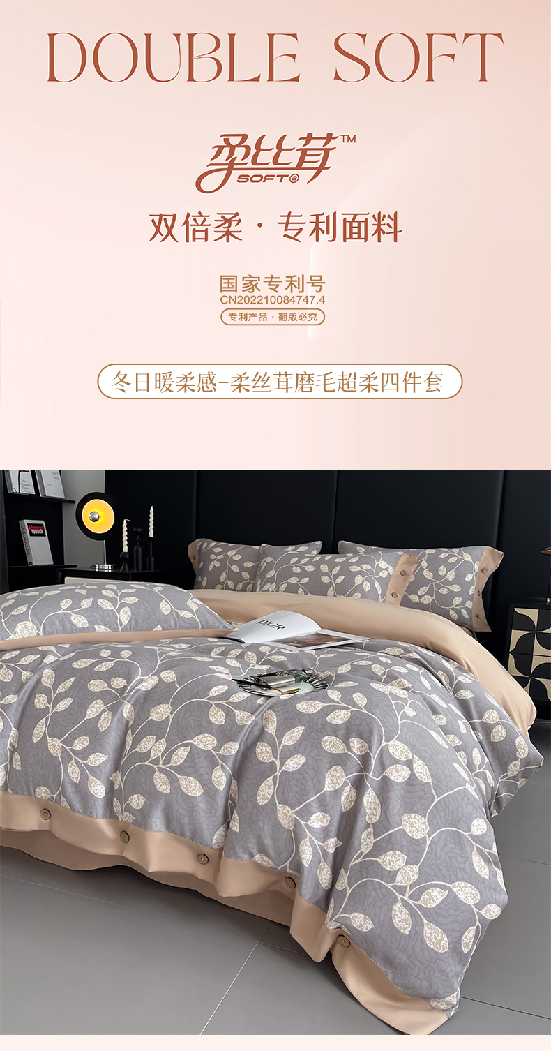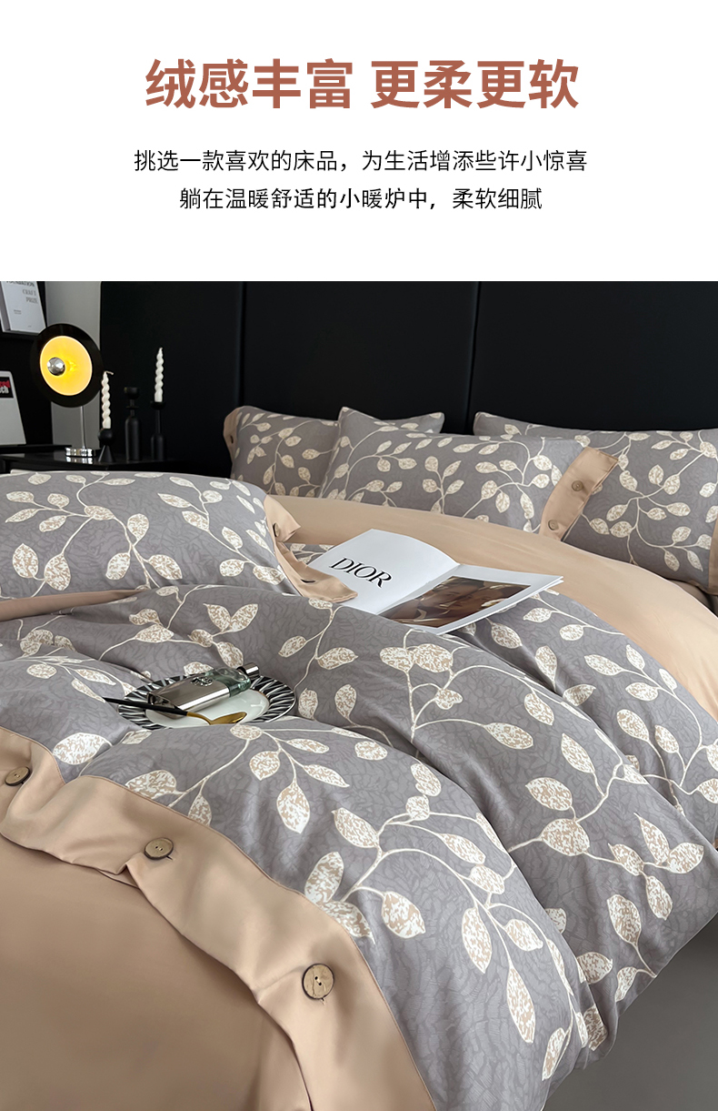 当前位置: 91家纺网 > 商品网购 > 床品套件 > 四件套 > 普通磨毛四件套 > 艾迪尚家纺 2025新款柔丝茸磨毛印花纽扣款四件套 碧秋