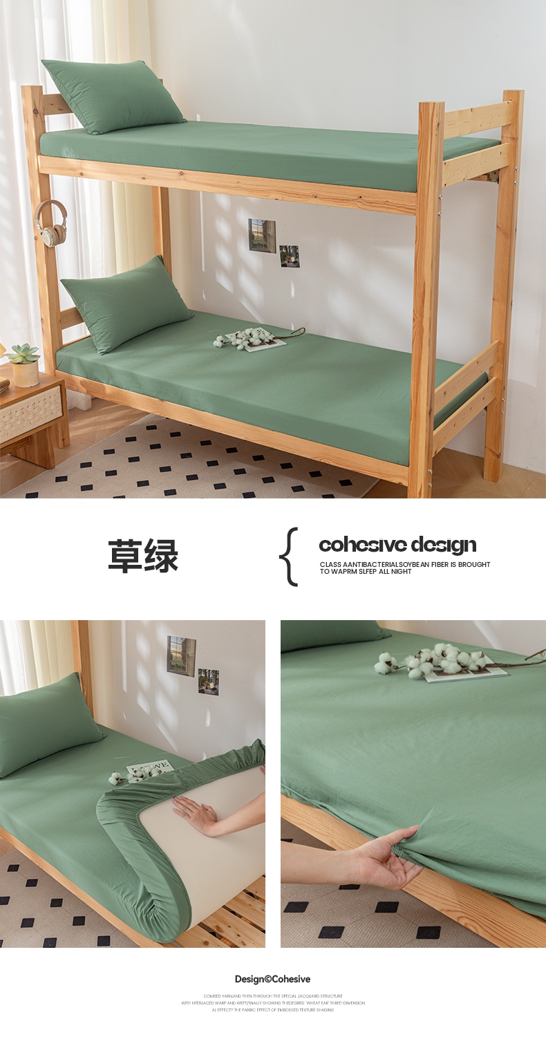 商品名称:寐眠 2024新款A类全棉水洗棉学生床笠系列 草绿