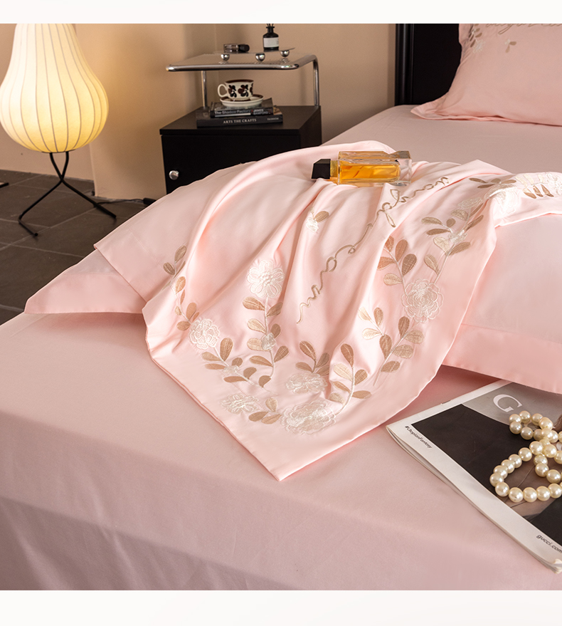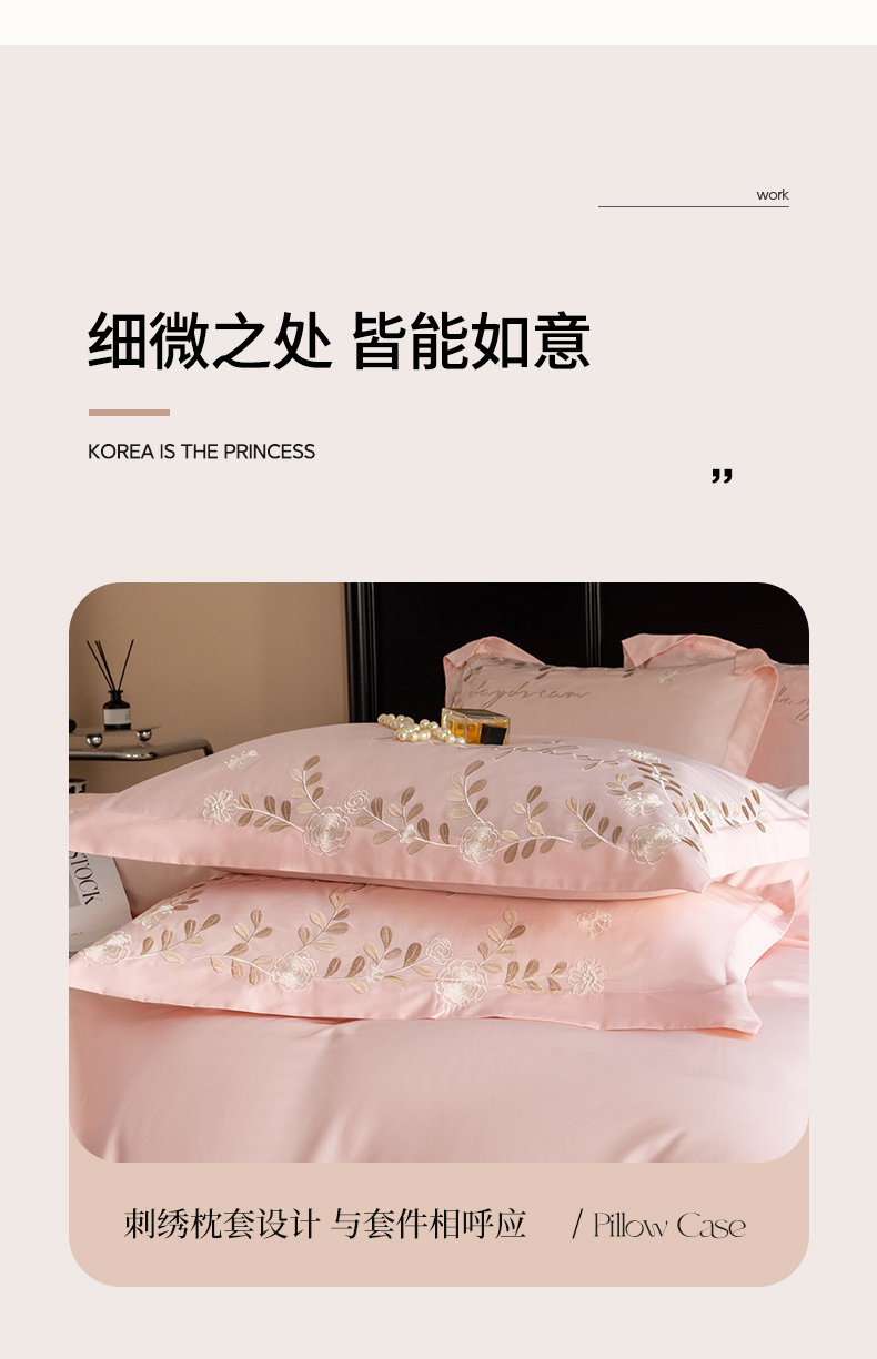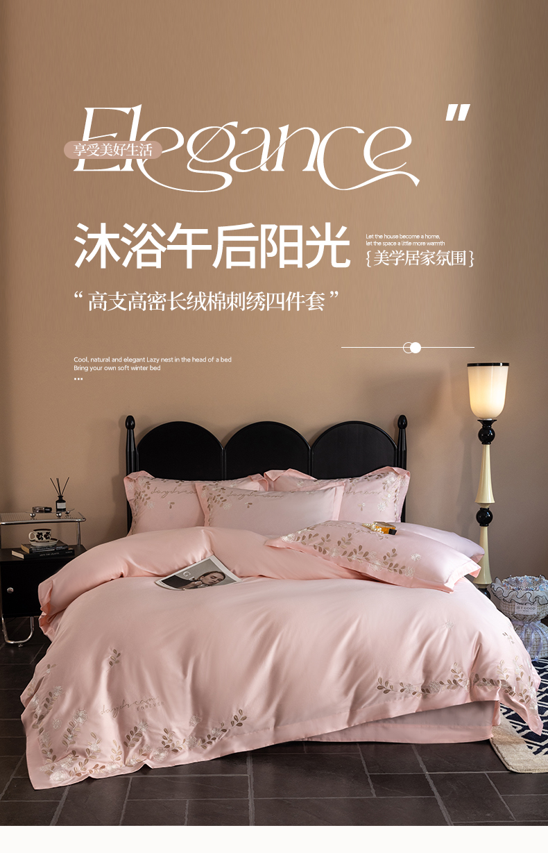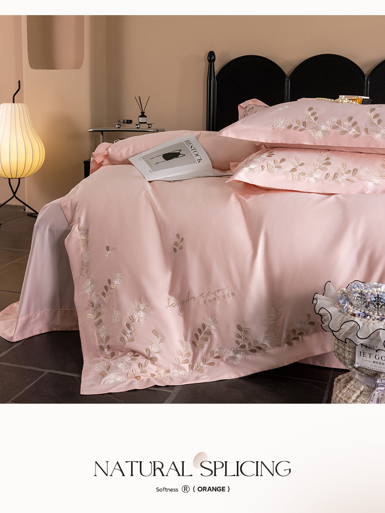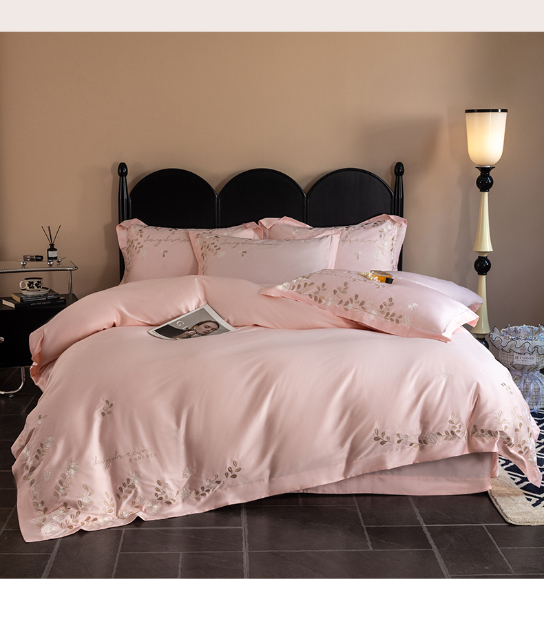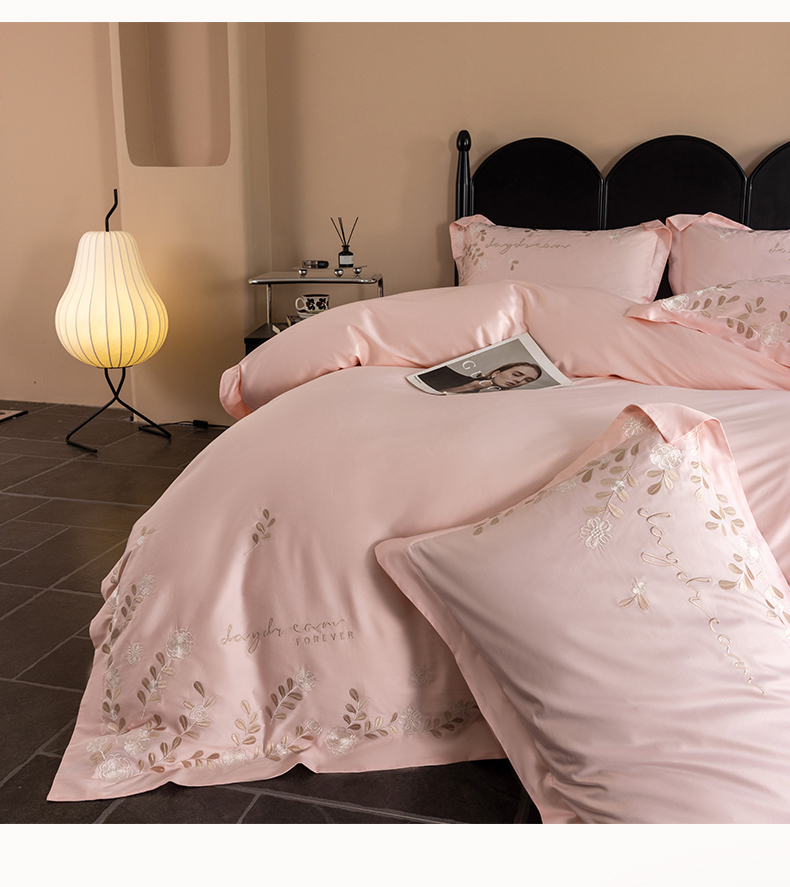 心悦家纺 2024新款高支高密120支长绒棉刺绣四件套 萝莉粉