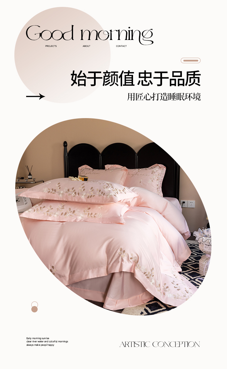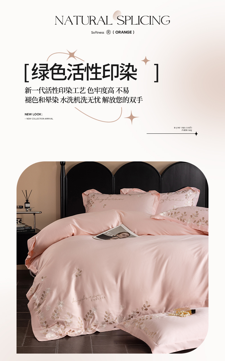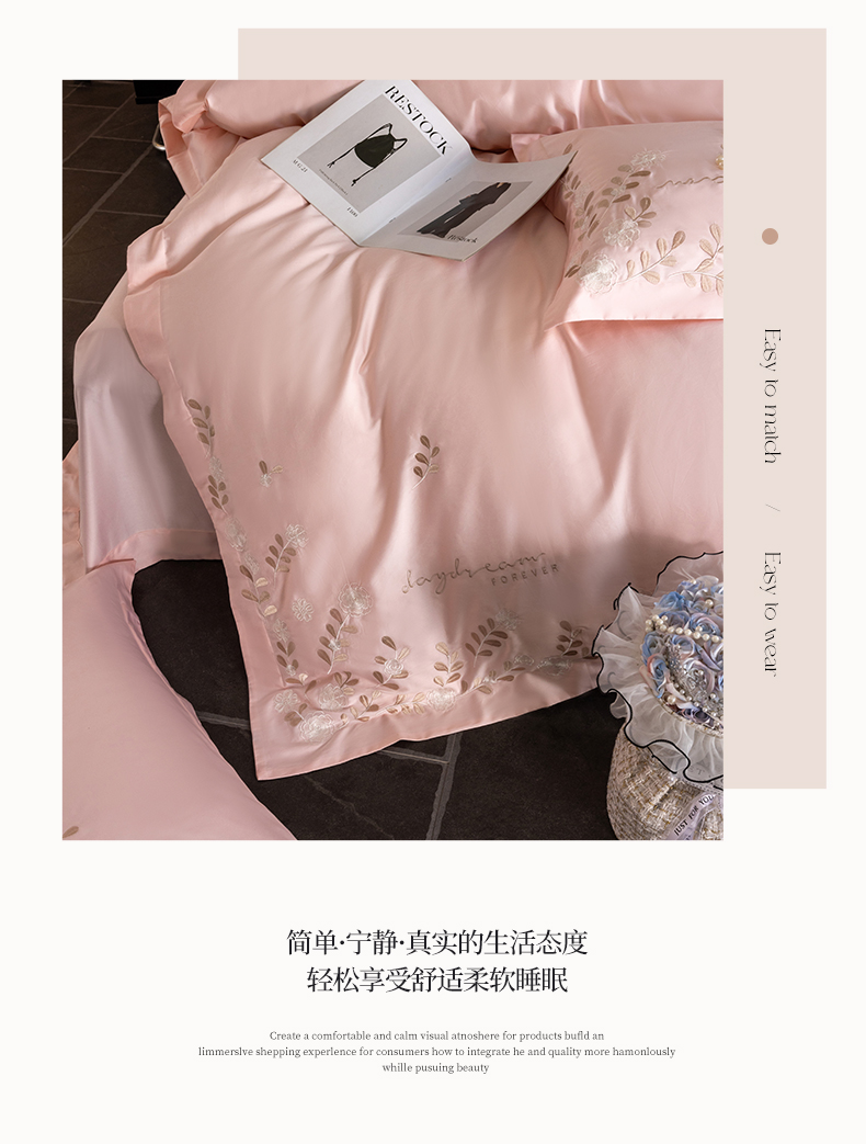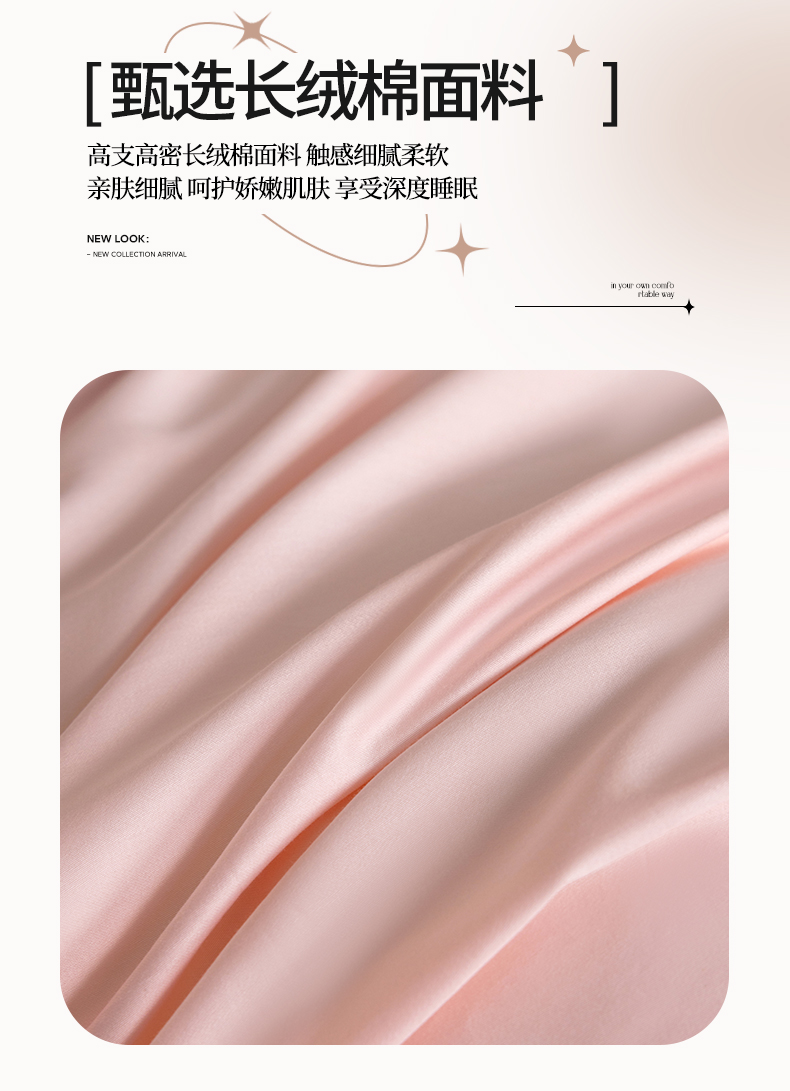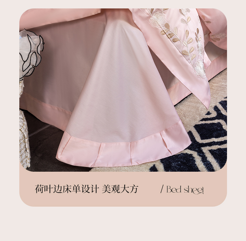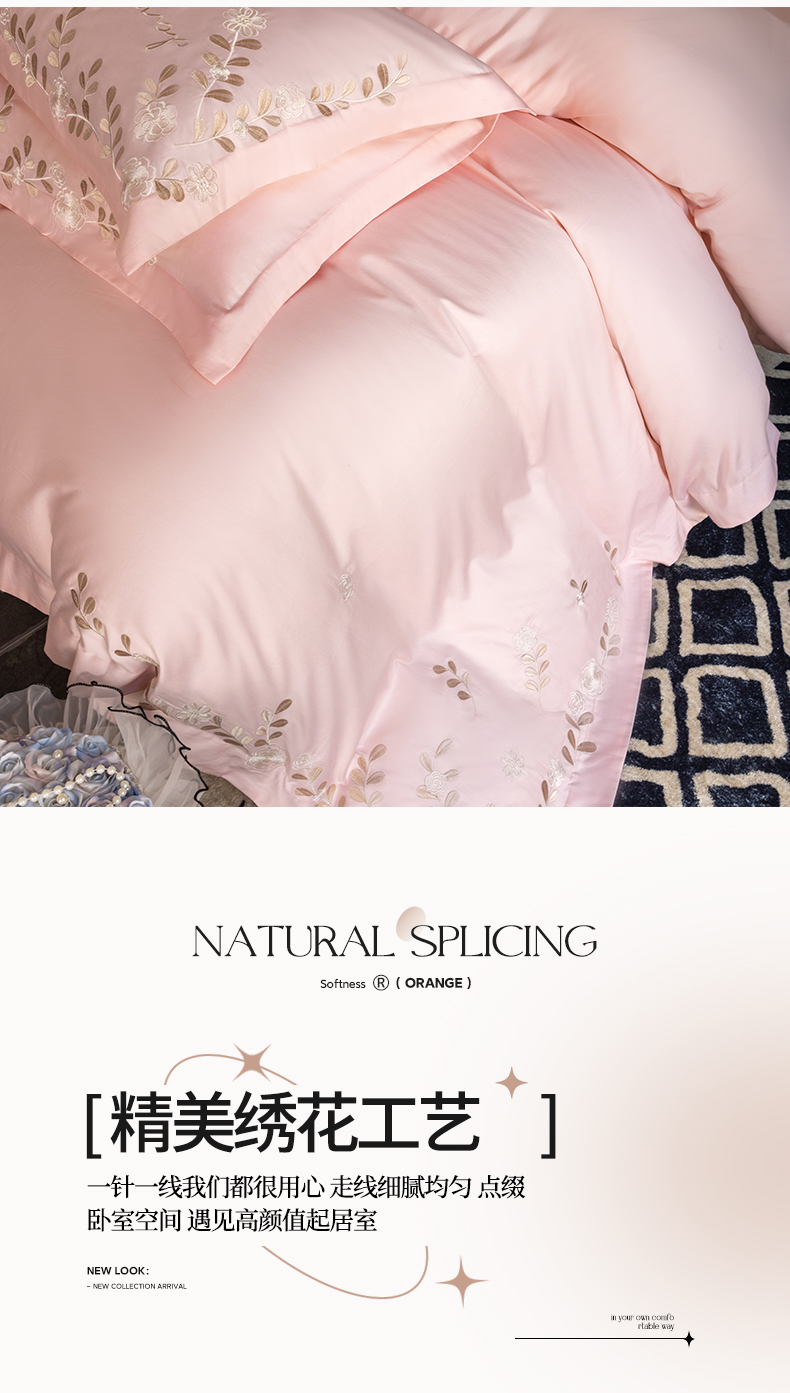 商品名称:心悦家纺 2024新款高支高密120支长绒棉刺绣四件套 萝莉粉