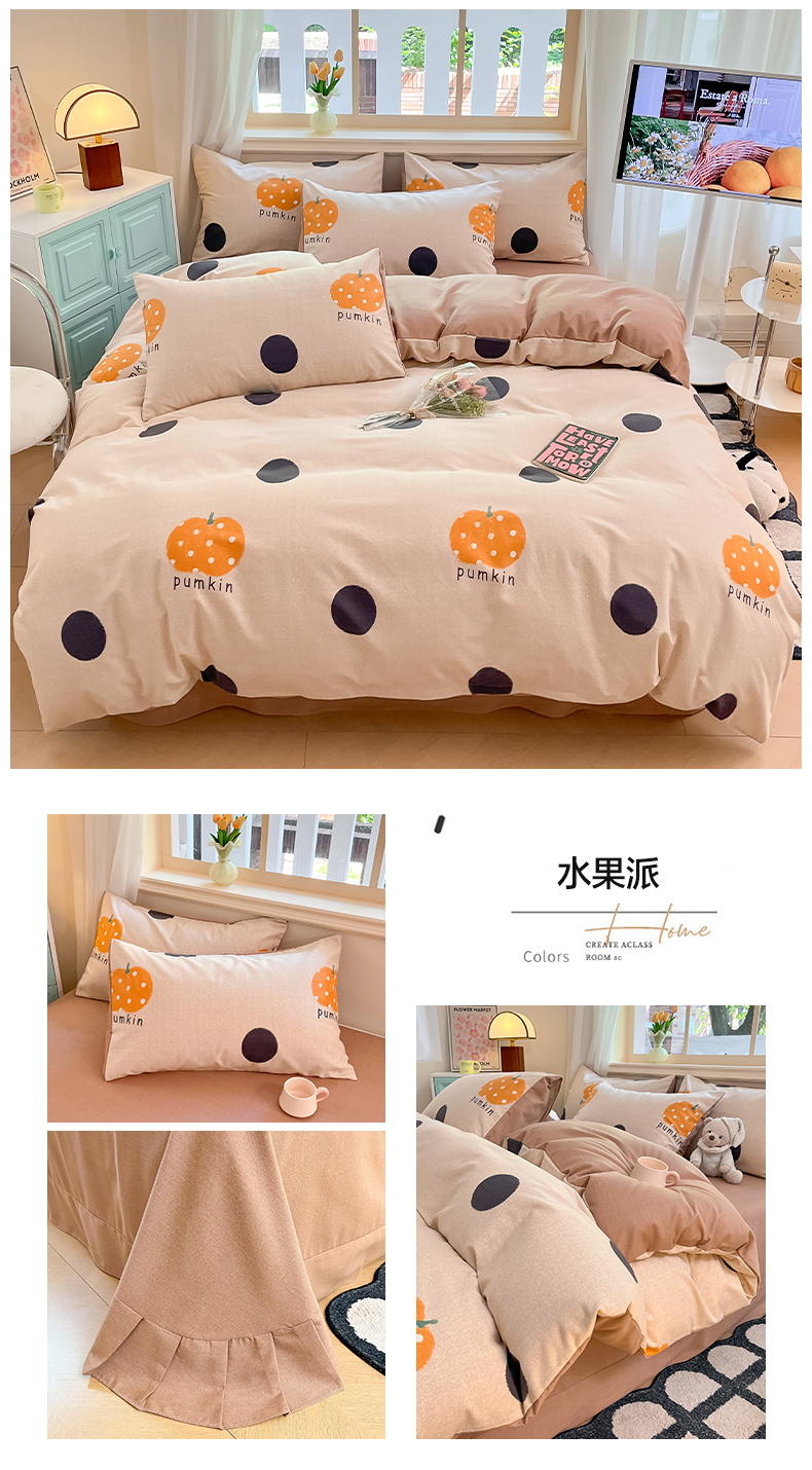 当前位置: 91家纺网 > 商品网购 > 床品套件 > 四件套 > 普通磨毛四件套 > 莱米家纺 2024新款全棉加厚磨毛印花四件套 水果派