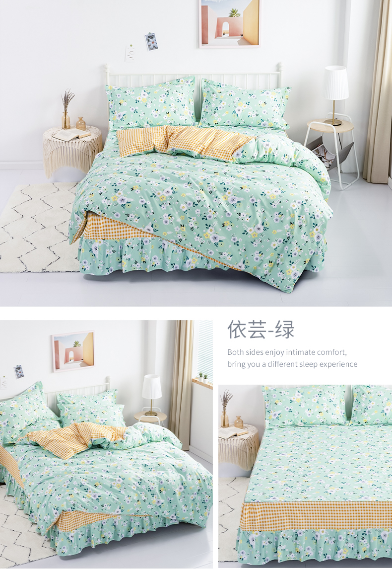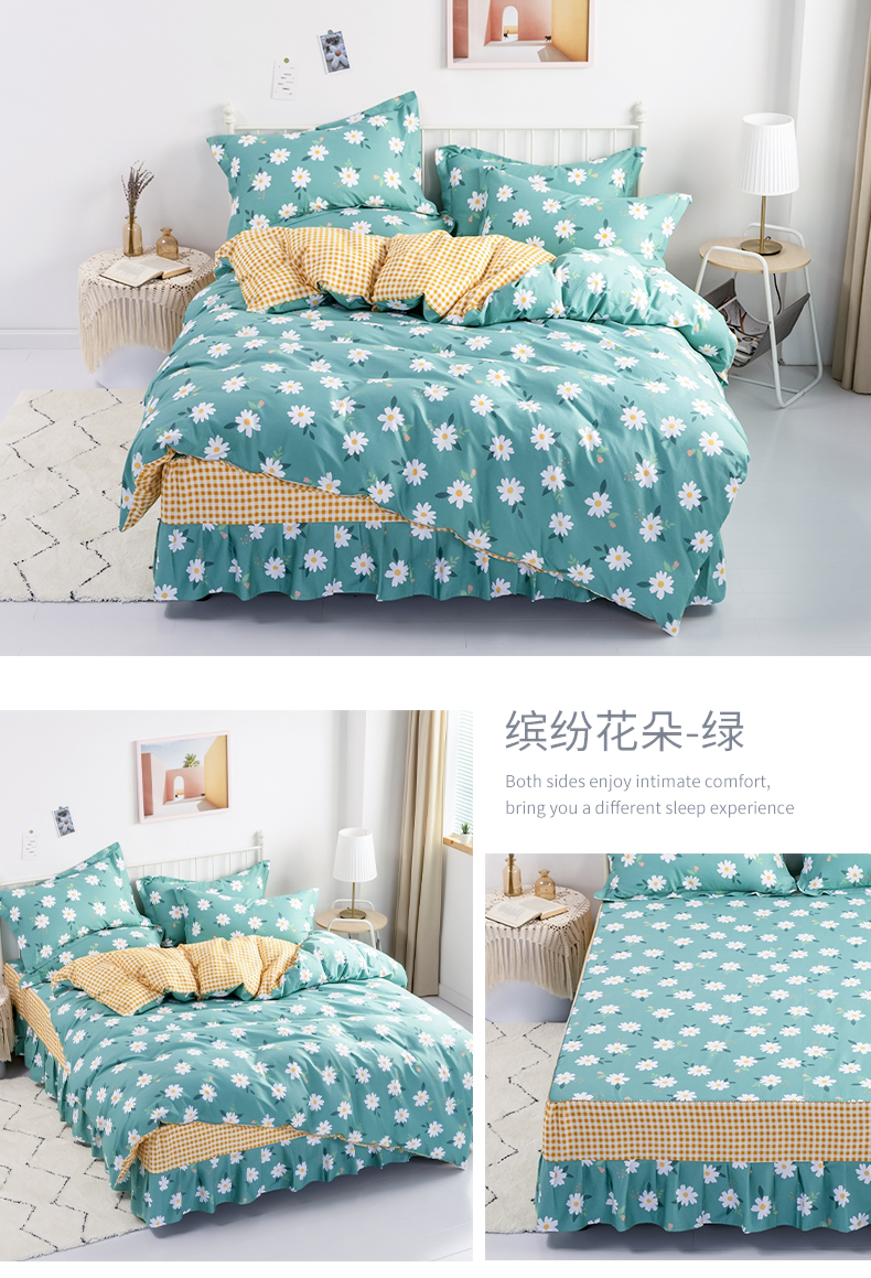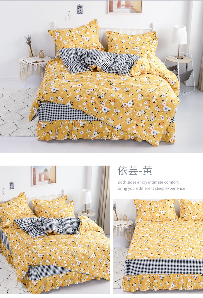 (总1)安逸家纺 12868 新款全棉床裙四件套床罩学生纯棉床裙款三件套