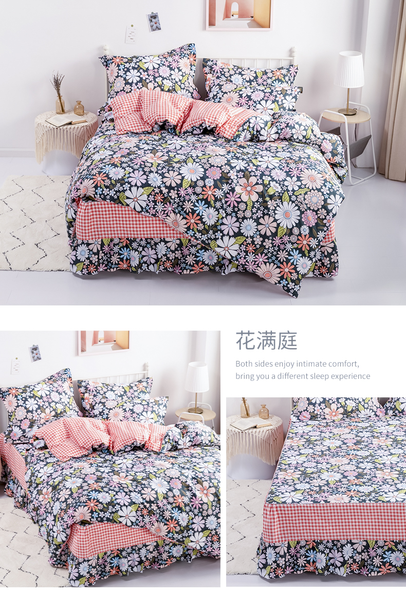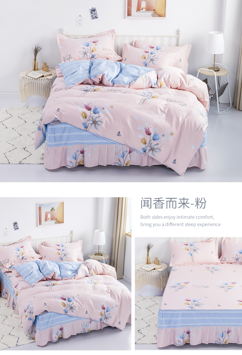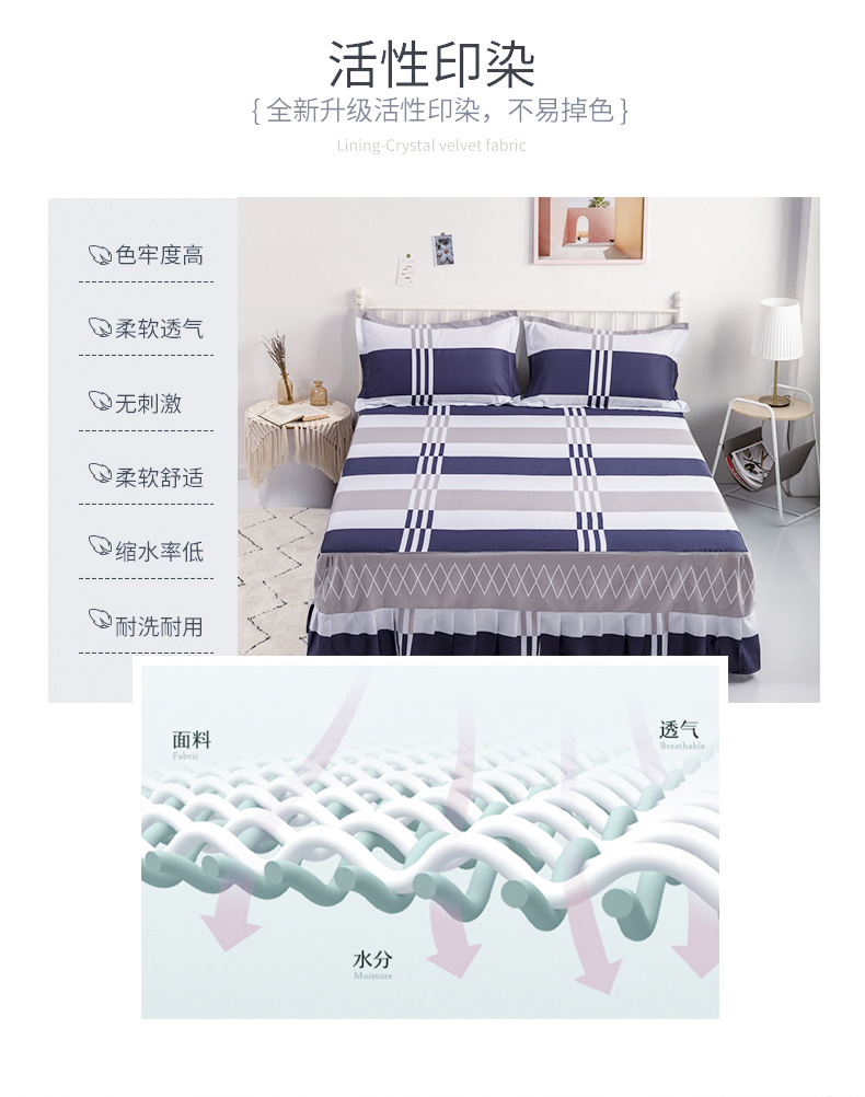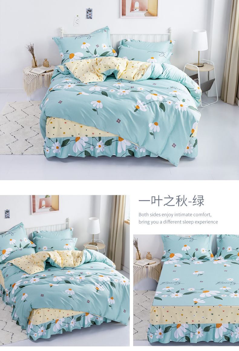 (总1)安逸家纺 12868 新款全棉床裙四件套床罩学生纯棉床裙款三件套