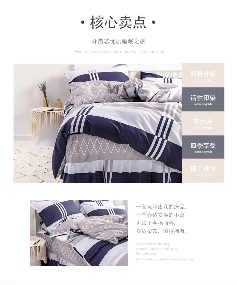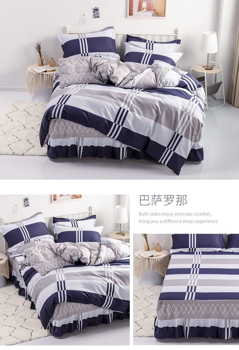 1.8x2.2床:床裙180x220+被套200x230+枕套2只(四件套)