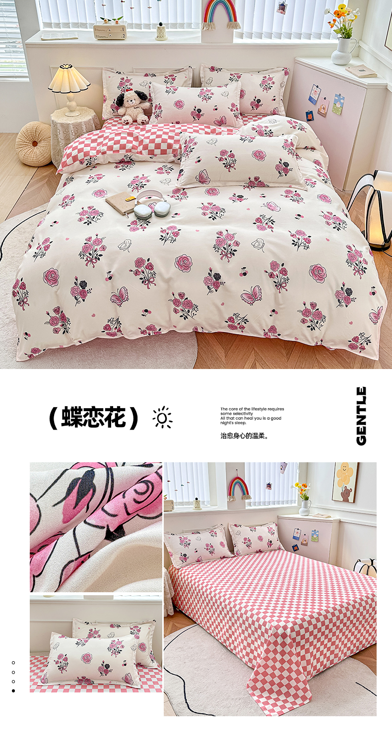 卡斯诺 2025新款芦荟棉四件套7月新花型 蝶恋花