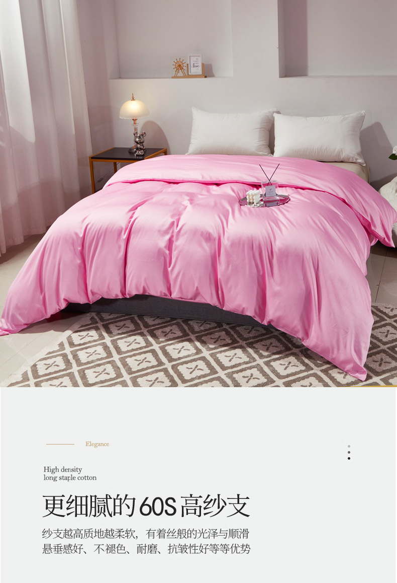 商品名称:晶缦家纺 2025新款全棉60支贡缎长绒棉纯色单品被套单件60S素色纯棉单被套多规格被罩活性印染 琳澜-粉红色