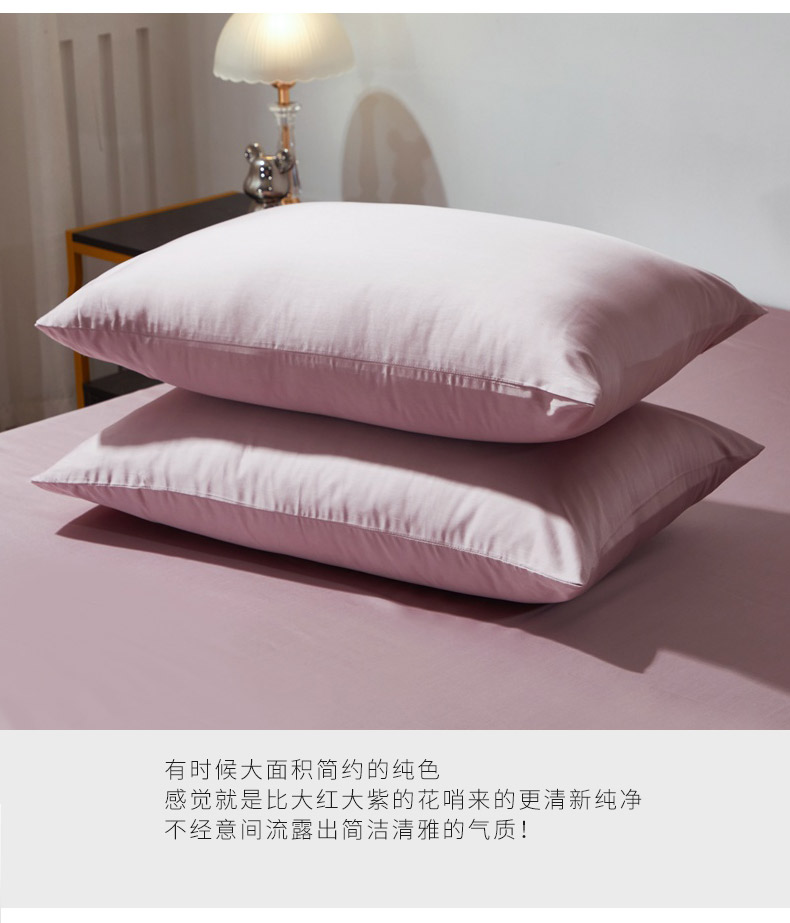 商品名称:晶缦家纺 2025新款全棉纯棉60支贡缎长绒棉纯色多规格单品枕套 琳澜-粉豆沙